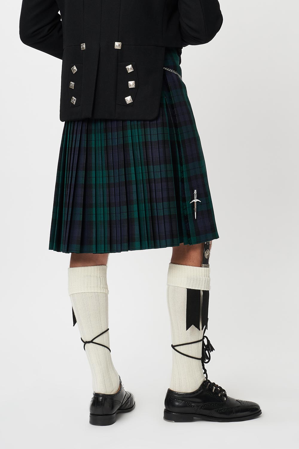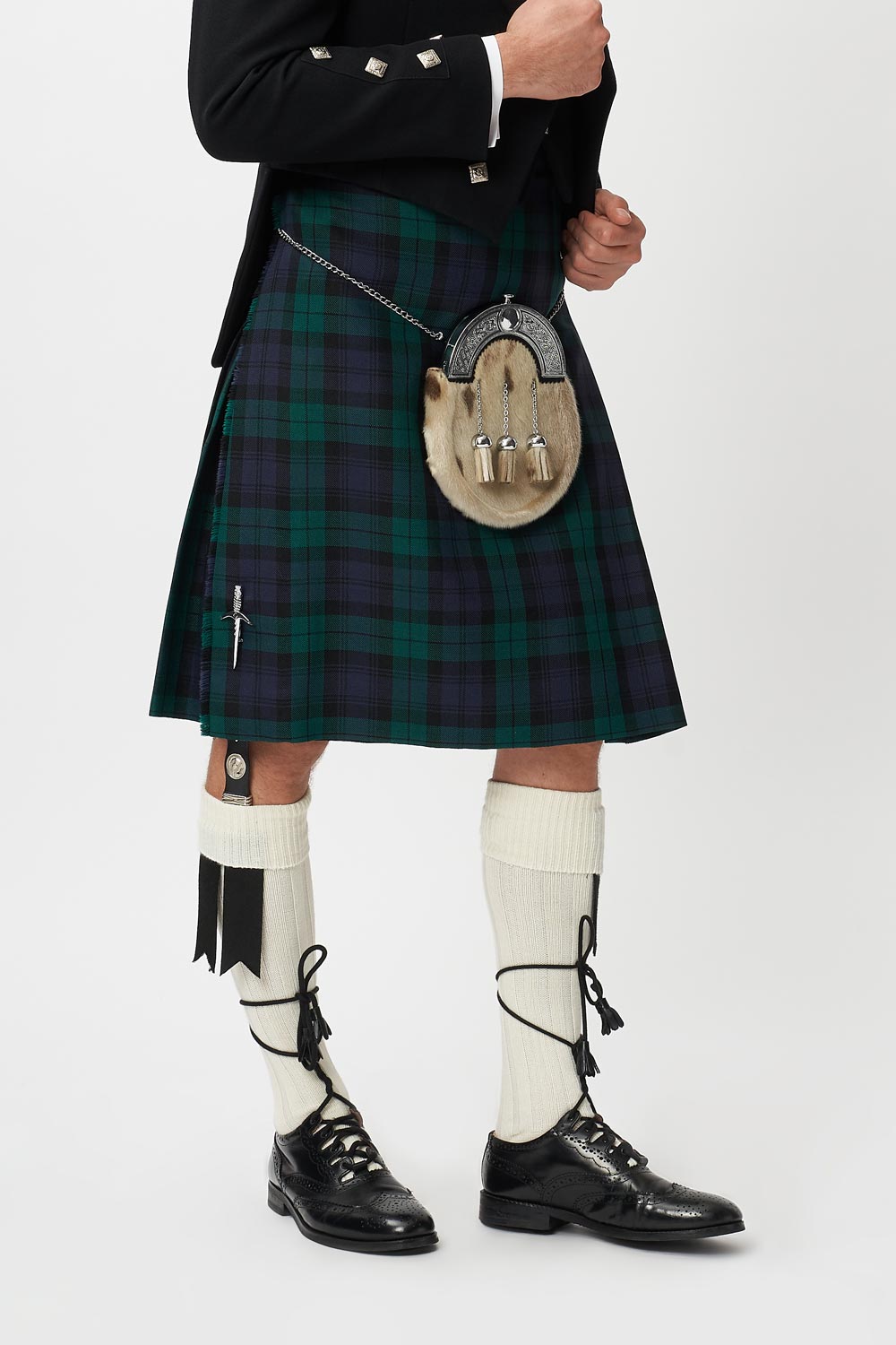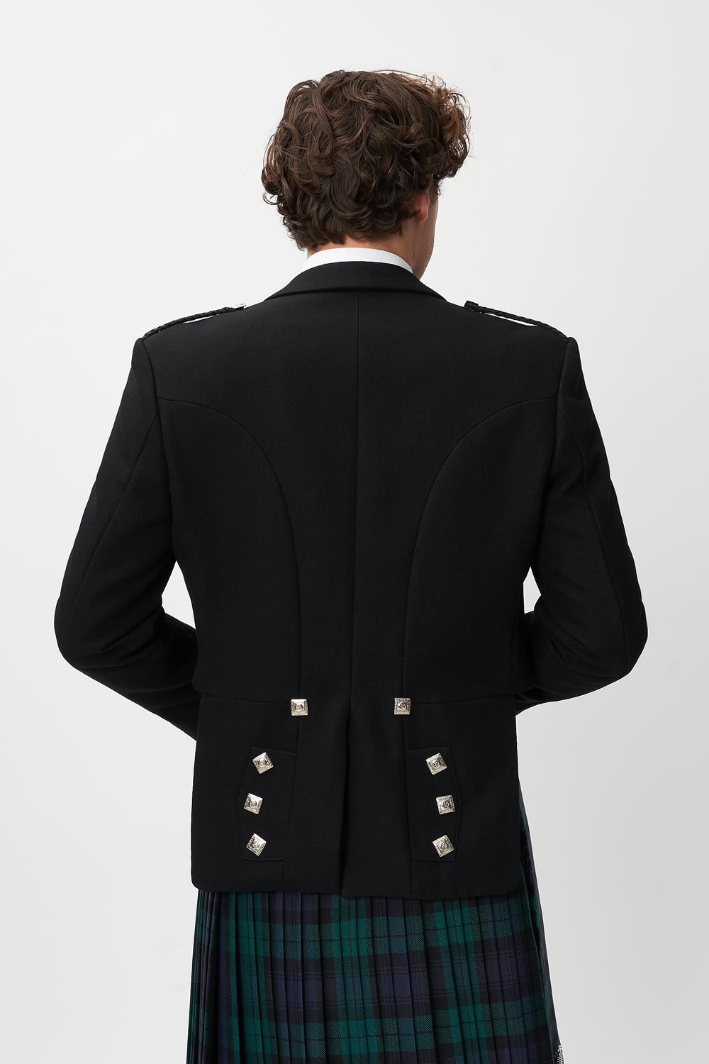 The Bonnie Prince Charlie jacket and waistcoat, paired with the Black Watch kilt. A beautiful tartan kilt. The highland classic in formal wear. The low cut of the three button waistcoat means a bow tie is the perfect accessory.