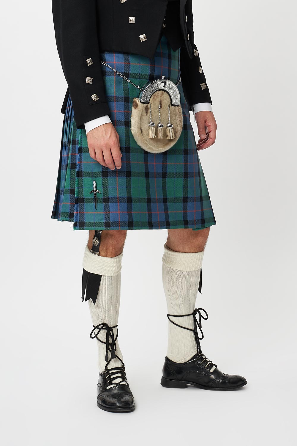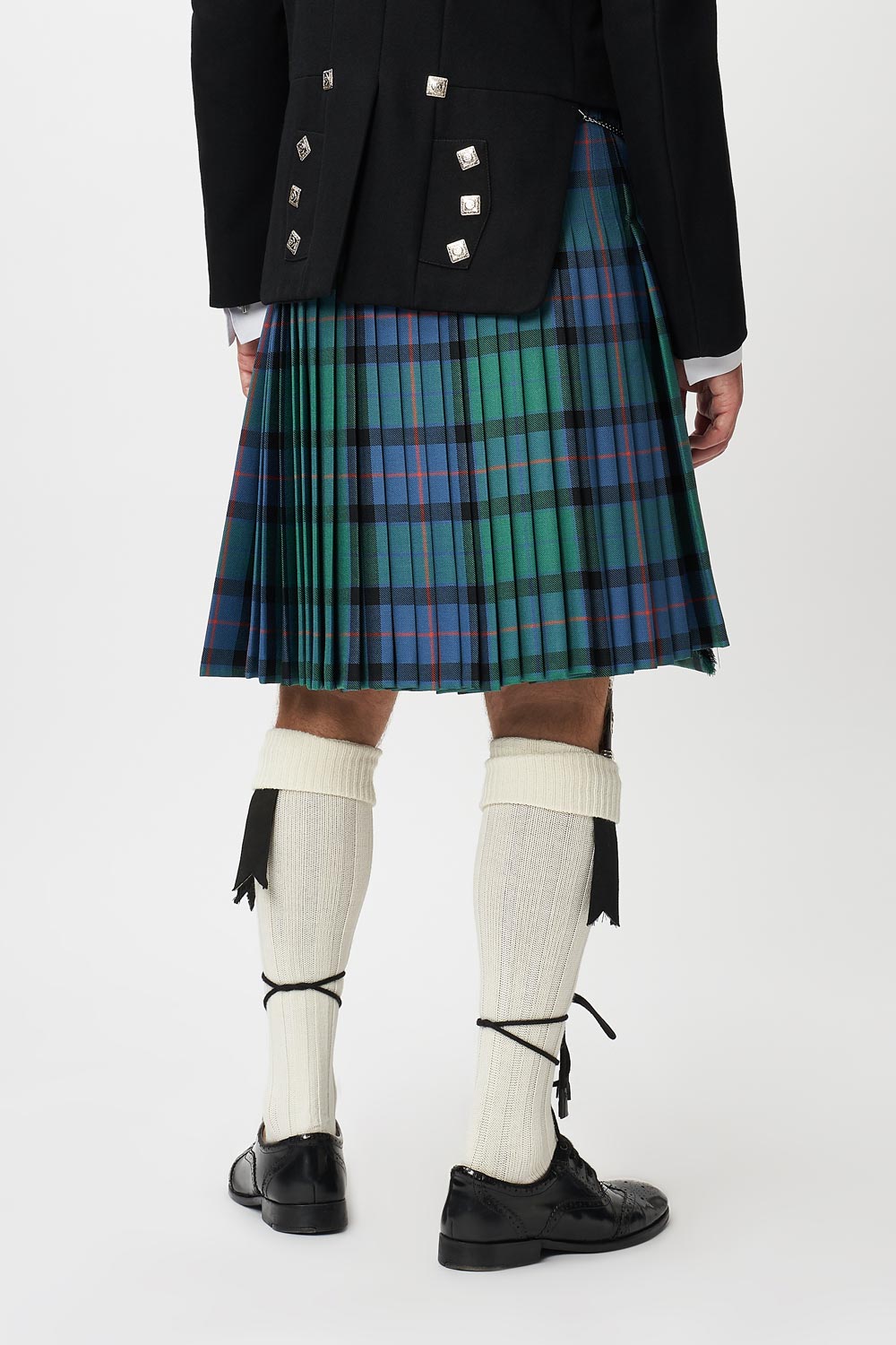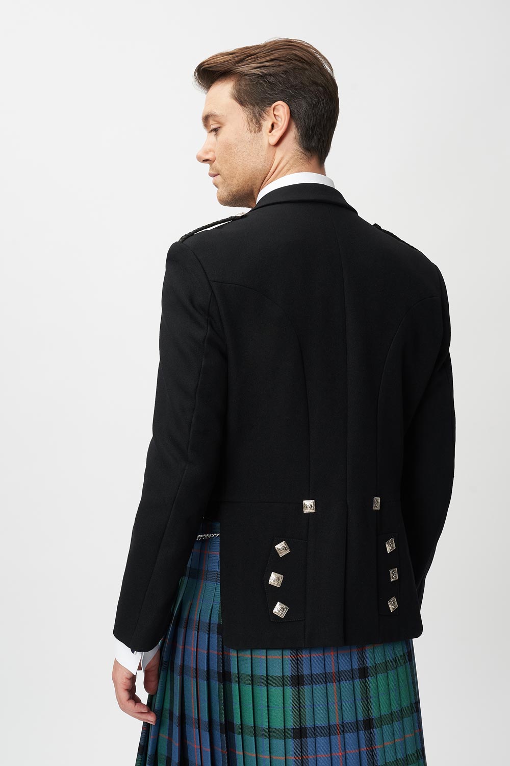 The Prince Charlie jacket paired with the Flower of Scotland Kilt, a highland classic for formal wear. Always wear a bow tie with the 3-button waistcoat. Found in the Prince Charlie styling bundle. Hire this immaculate ensemble from Rathbones Tailor now.