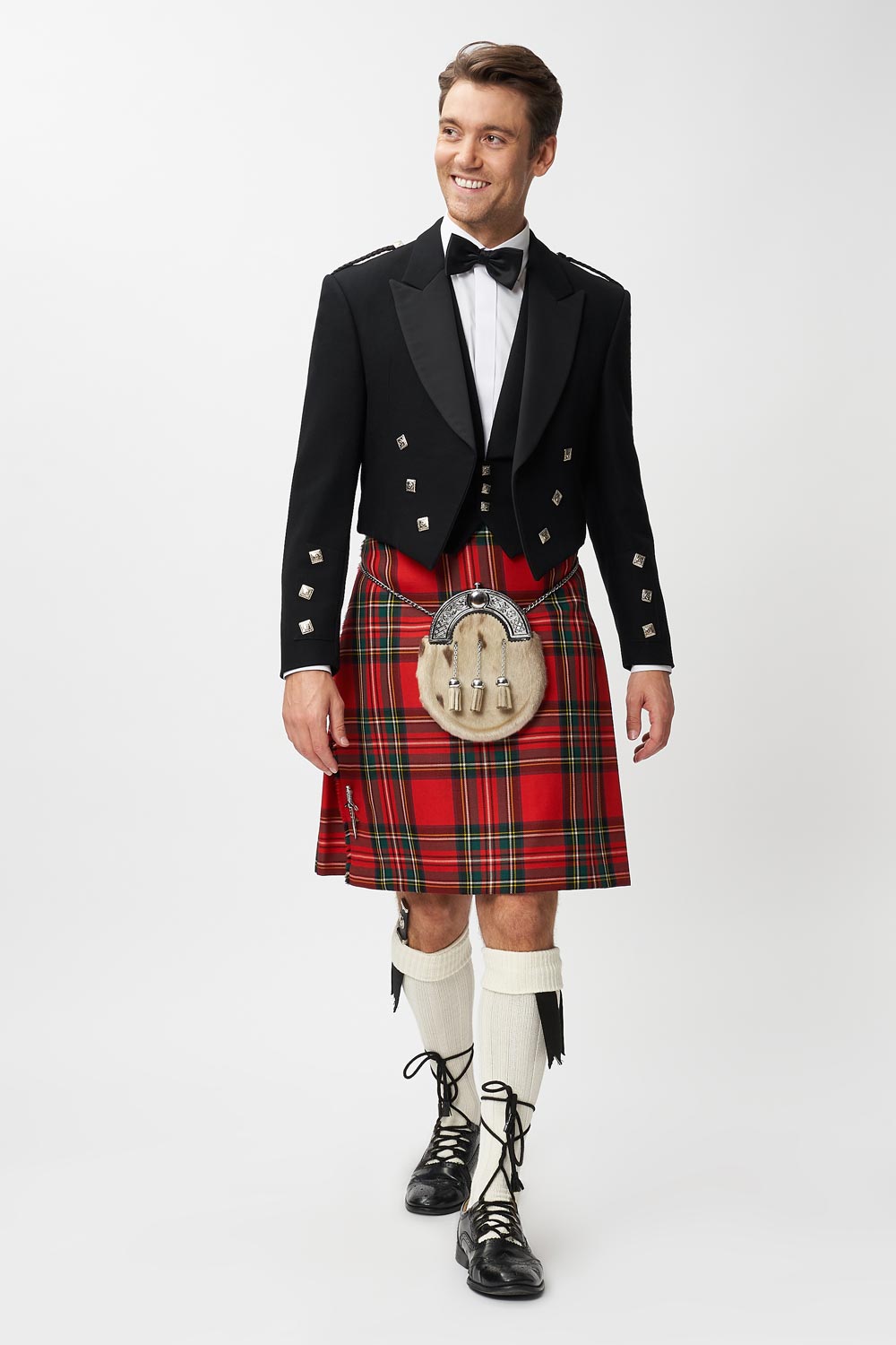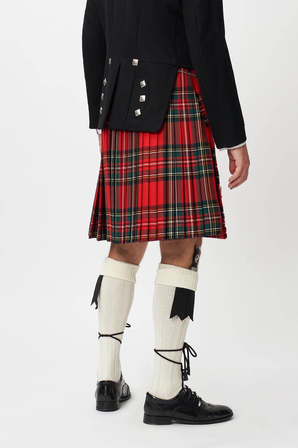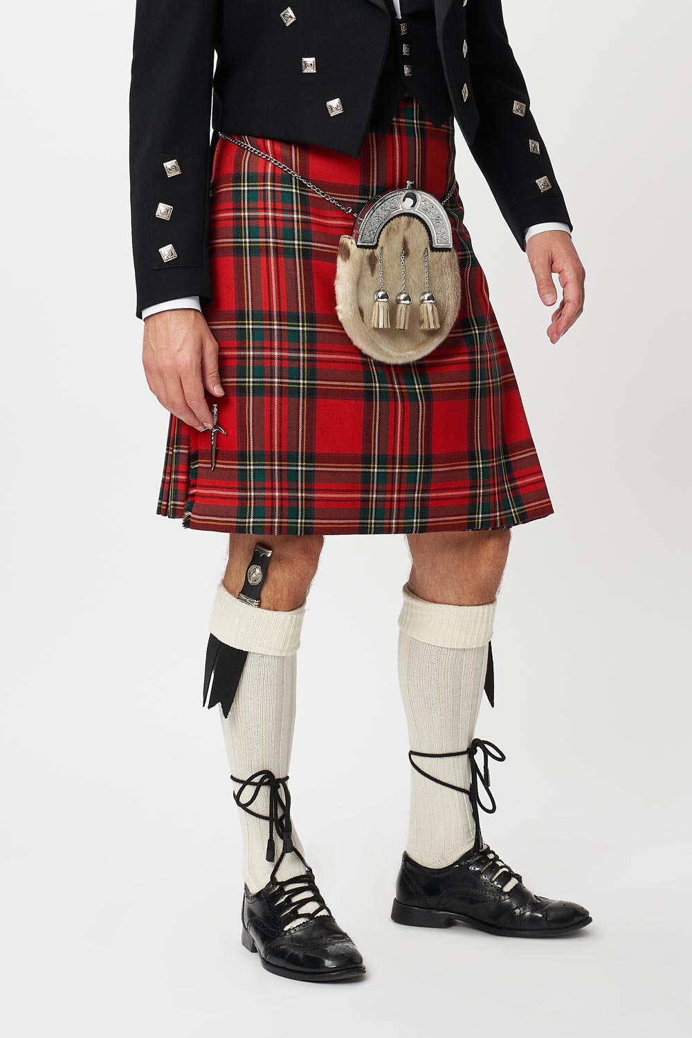 The red tartan of the Royal Stewart kilt is a show stopper. Pair it with the Bonnie Prince Charlie jacket and it's almost illegal how good this Highland Dress outfit looks.