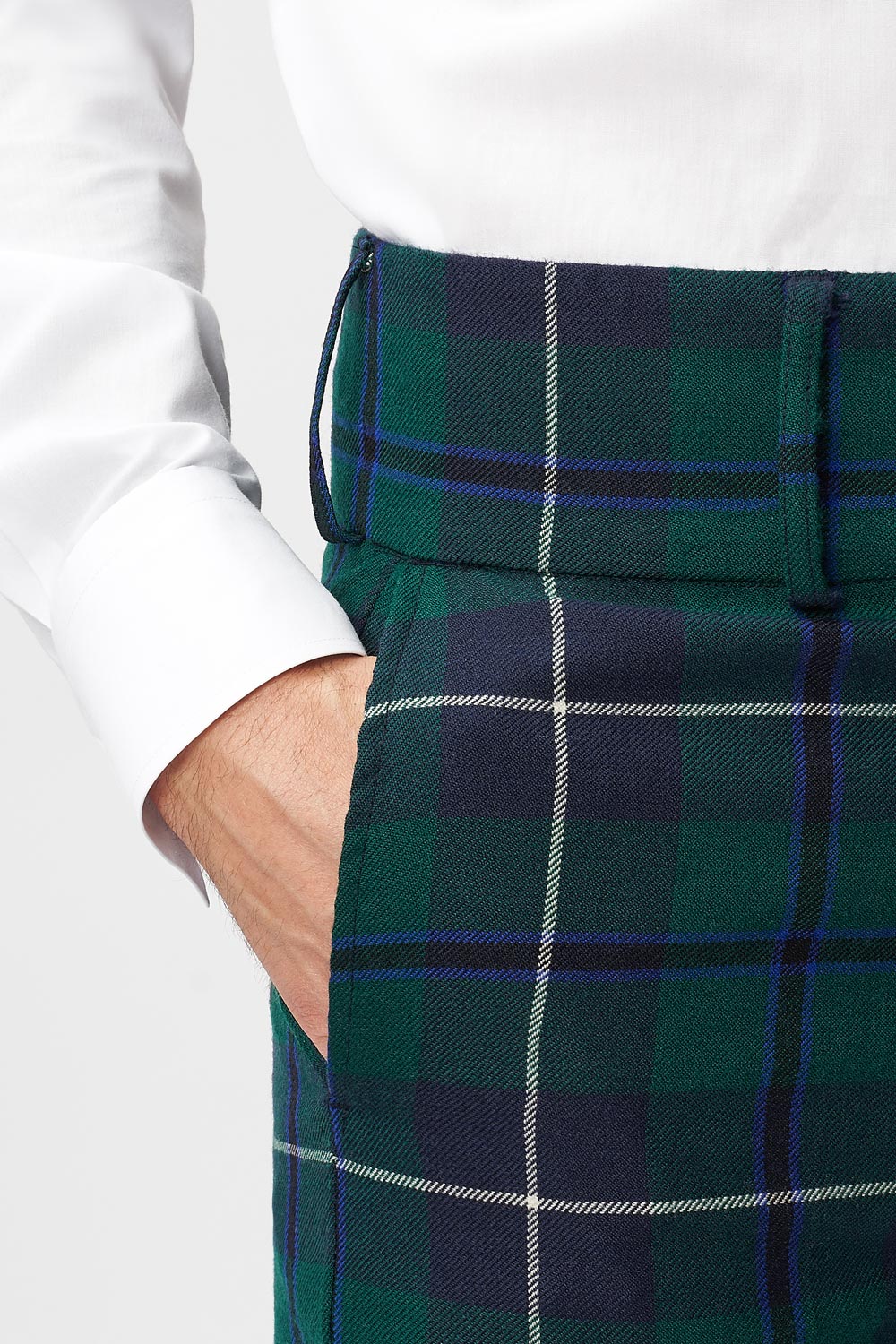 While sizing for trews, take a true waist measurement (around the belly button) as they sit higher than your usual suit trousers.
