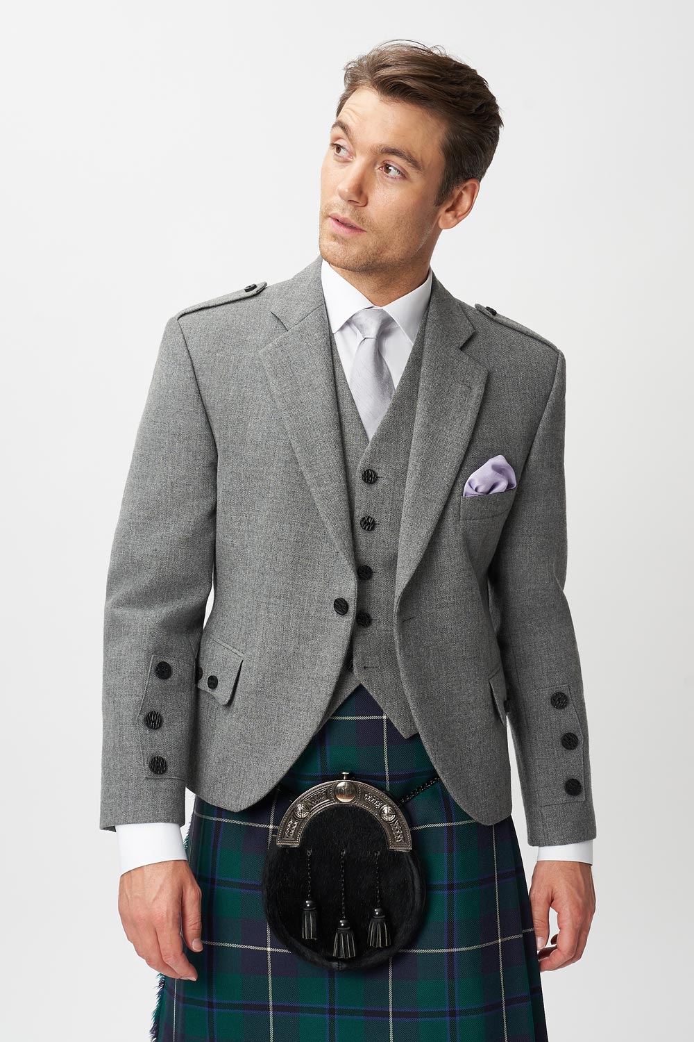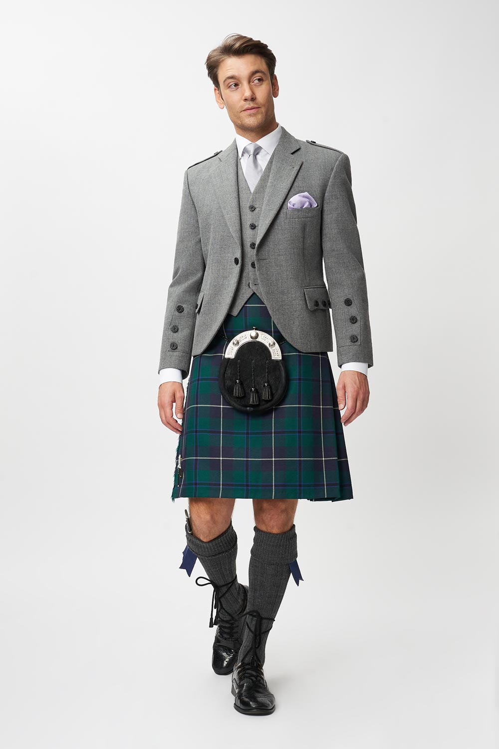 The Keville Light Grey Tweed Jacket & Waist Coat with Modern Douglas Kilt