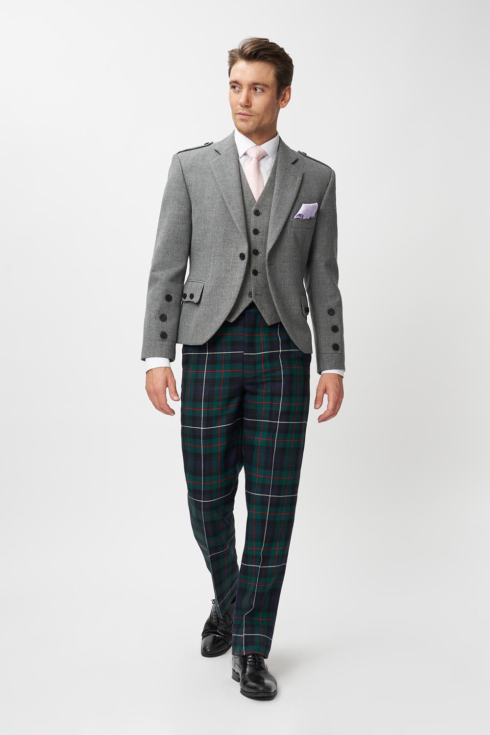 The Modern Robertson trews. Originally a winter option, but definitely not limited to colder climates. Hire the Modern Robertson trews with our Light Grey tweed jacket and waistcoat for a modern, sophisticated highland look.