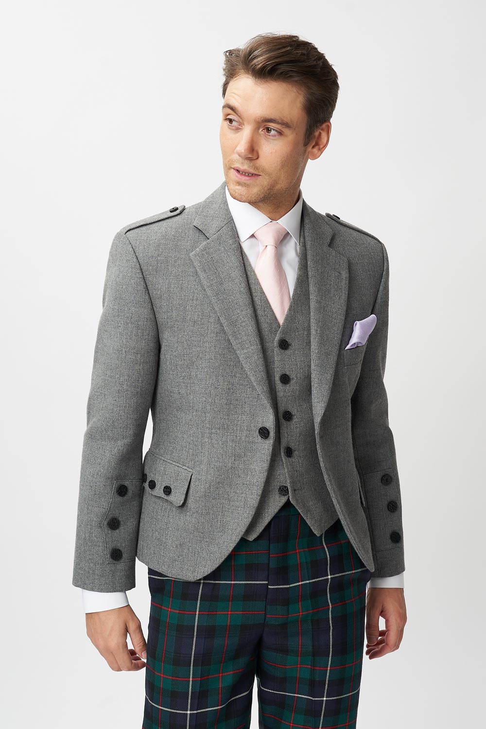 The Keville Light Grey Tweed Jacket & Waist Coat with Modern Robertson Trews