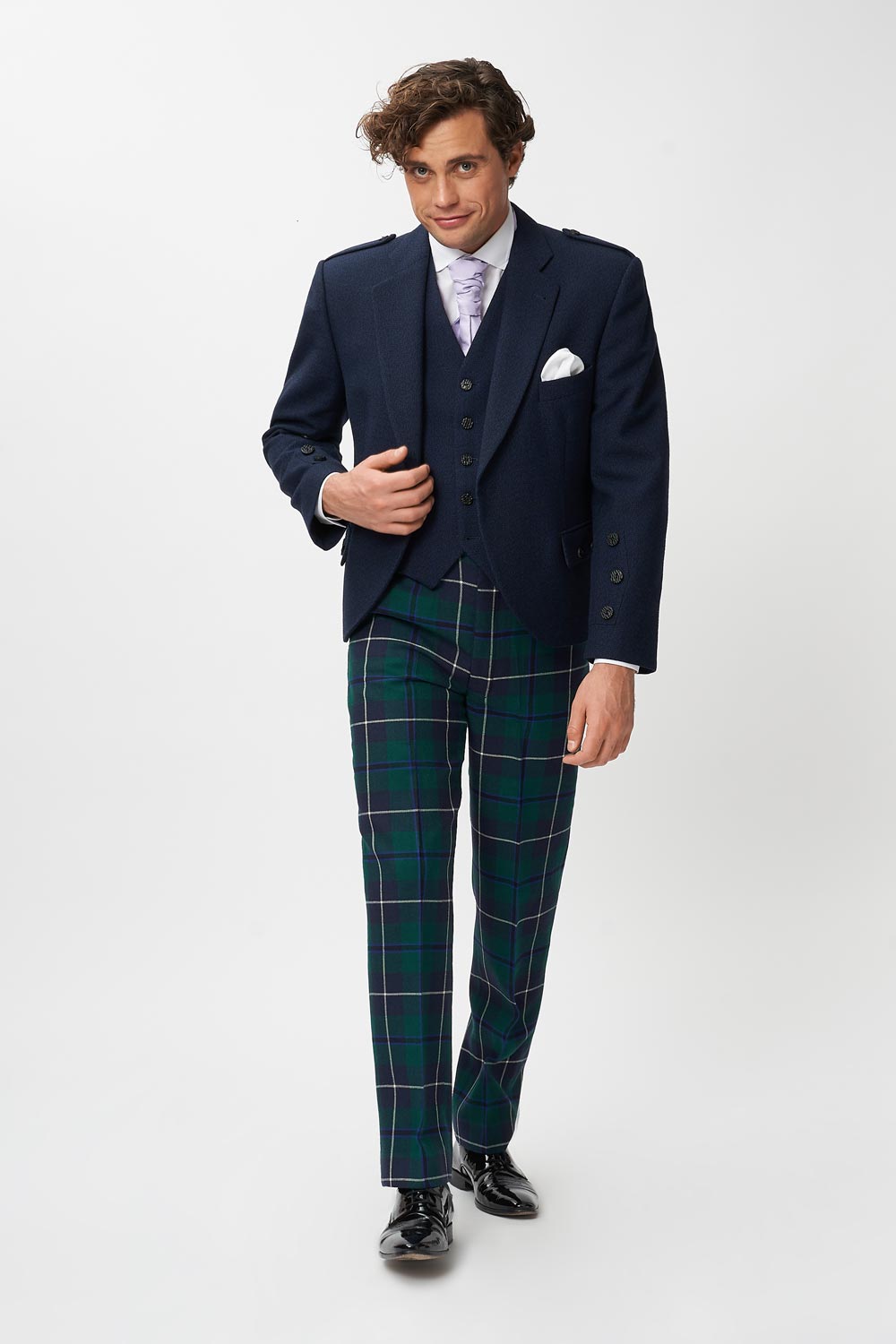 The Modern Douglas trews. Originally a winter option, but definitely not limited to colder climates. Hire the Help for Heroes trews with our navy tweed jacket and waistcoat for a modern, sophisticated highland look.