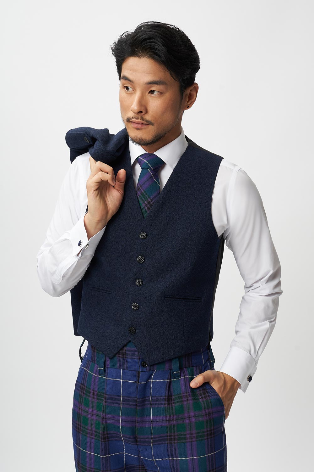The Keville Navy Tweed Jacket & Waist Coat with Spirit of Bannockburn Trews