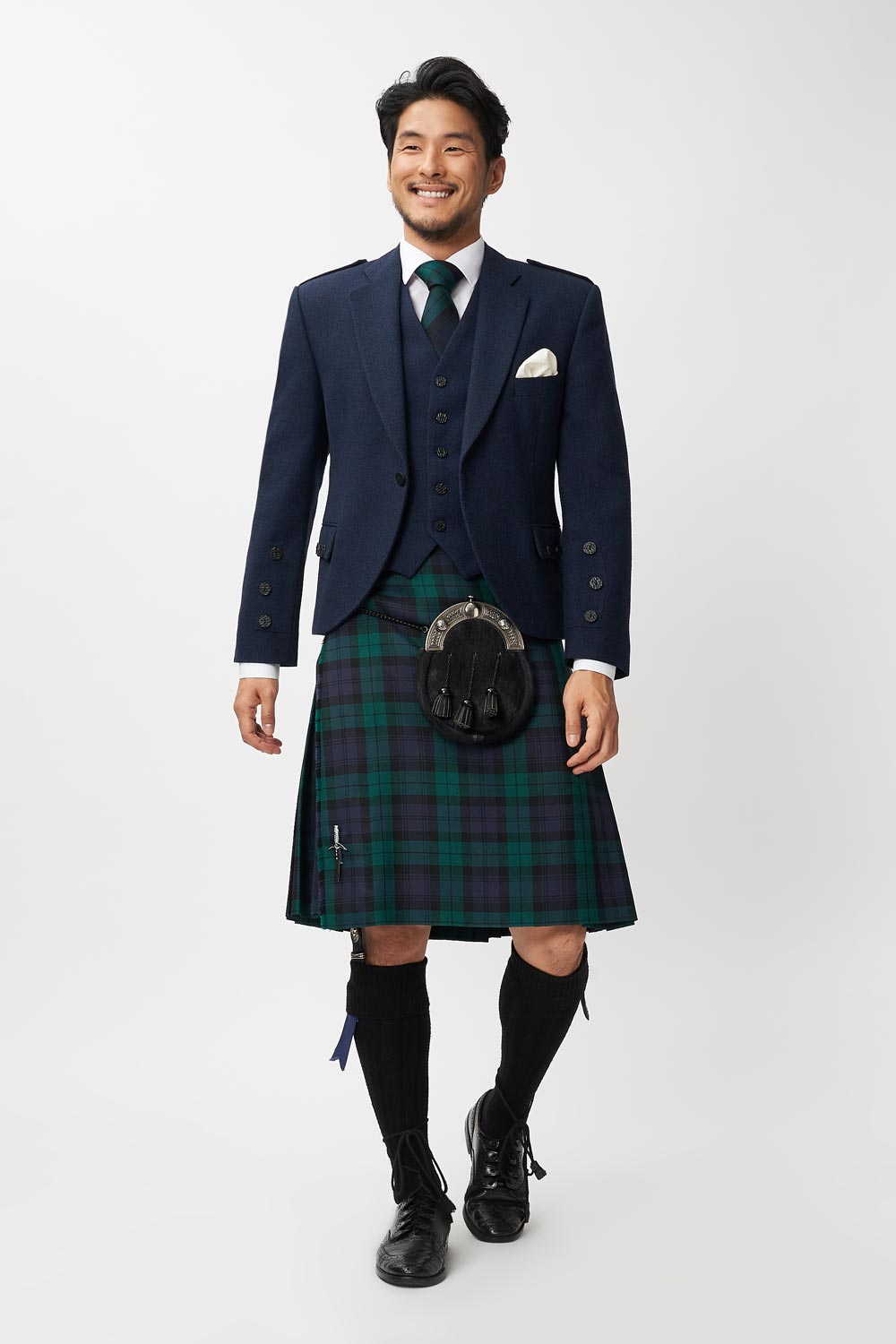 The Keville Navy Tweed Jacket & Waistcoat with Black Watch Kilt