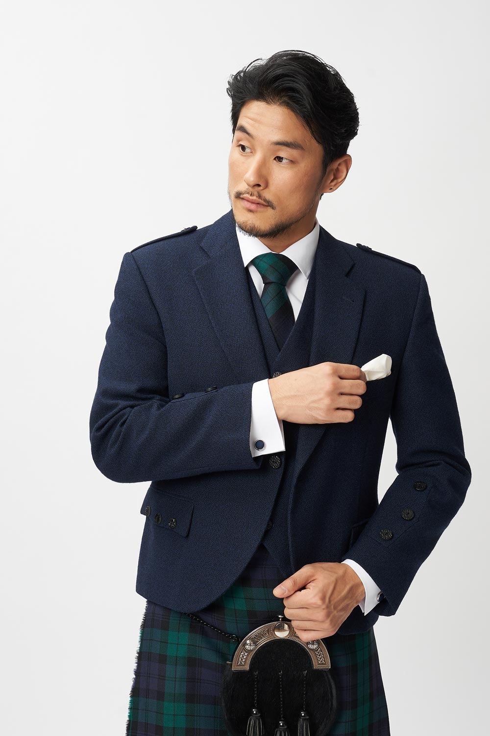 The Keville Navy Tweed Jacket & Waist Coat with Black Watch Kilt
