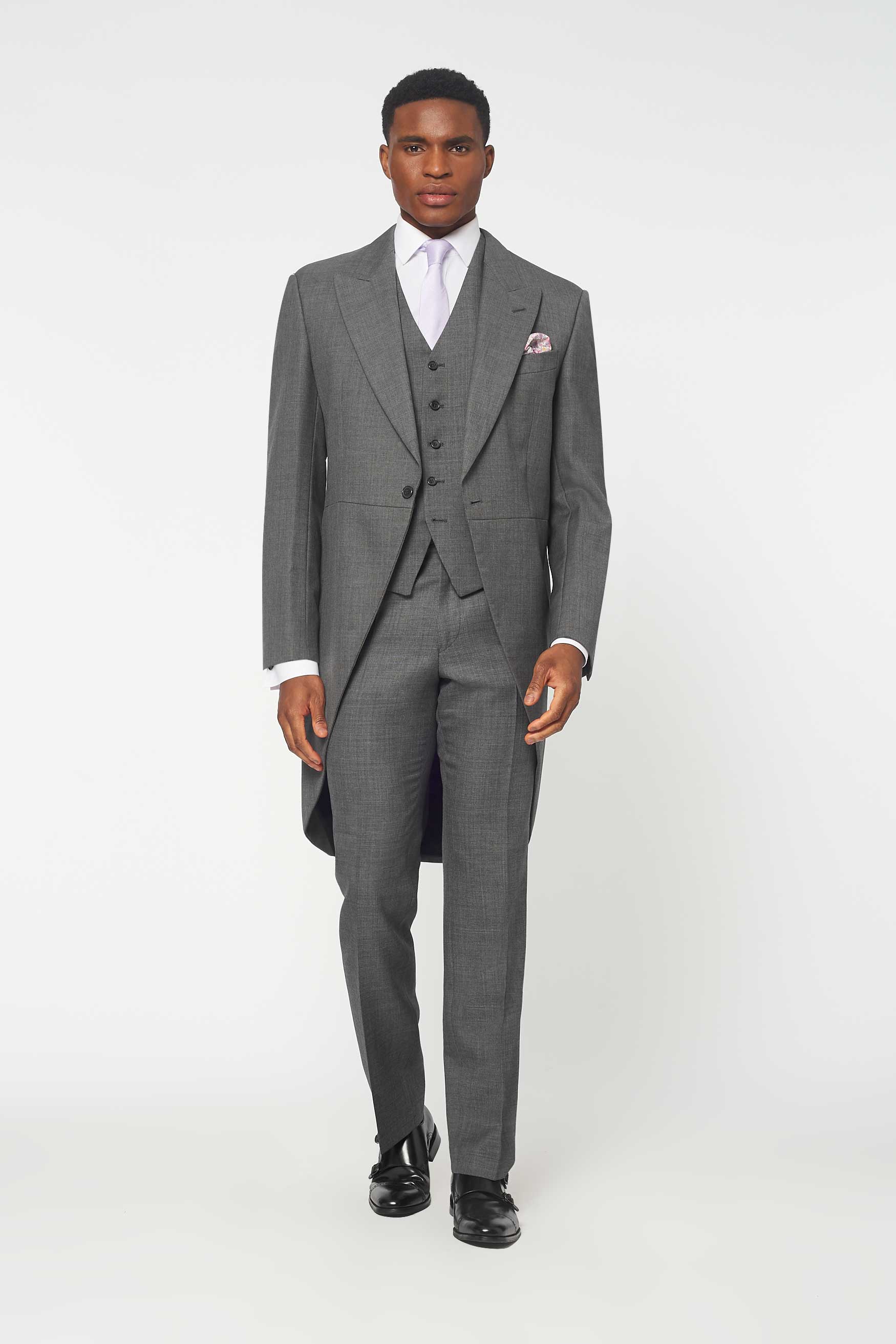 A 2 Piece tailcoat for those who already have a waistcoat, it is of course The Bidwell in Mid Grey - Hire this classic tailcoat and trousers for a classic look. Ideal for wedding parties, race meets such as Ascot, or just because you want to dress up on a Friday night. Completely your call. Fairly impractical to run a half marathon in. Runs true to size. If between jacket sizes, we recommend dropping down.
