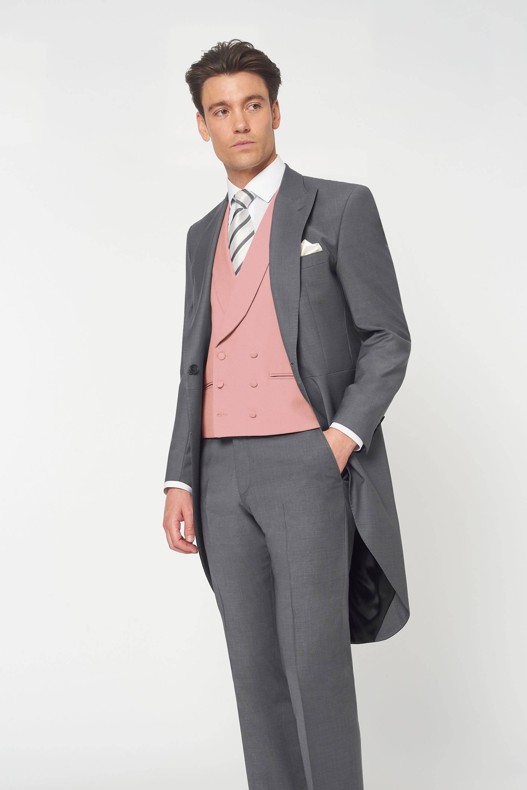 The Keadell - 3 Piece Grey Morning Suit | Pale Pink Double Breasted Waistcoat