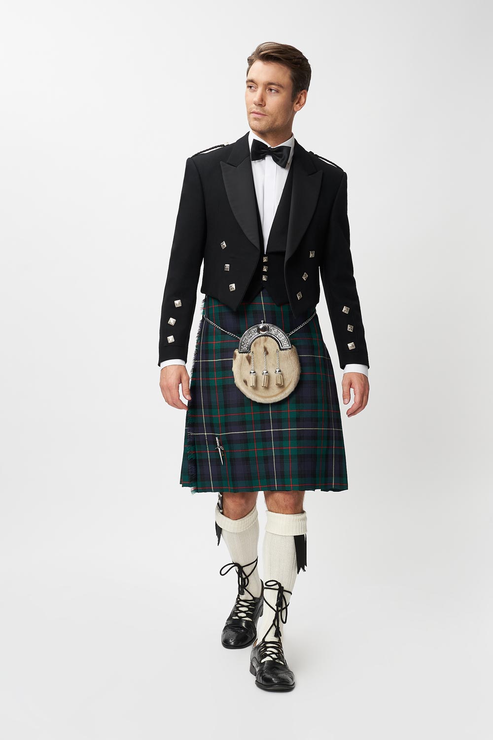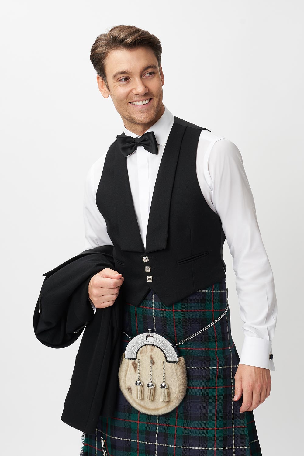 The Rathbones Tailor in-house styling team have curated this timeless highland dress ensemble. The Prince Charlie jacket and waistcoat, paired with the Modern Robertson kilt. It's a winner, trust us.