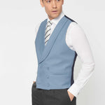 The Bidwell 3 Piece morning suit in Black Herringbone. Available to hire, paired with the Pale Blue Double Breasted waistcoat - Hire this classic three piece regular fit morning suit with a timeless cut and straight leg trousers. Rent this morning suit for a day at the races, for your groomsmen, or just because you feel fancy. Your call. Prepare your version of a humble thank you for all the compliments you're guaranteed to receive. Runs true to size. If between jacket sizes, we recommend dropping down. Select either Black Herringbone or Grey Pinstripe trousers.