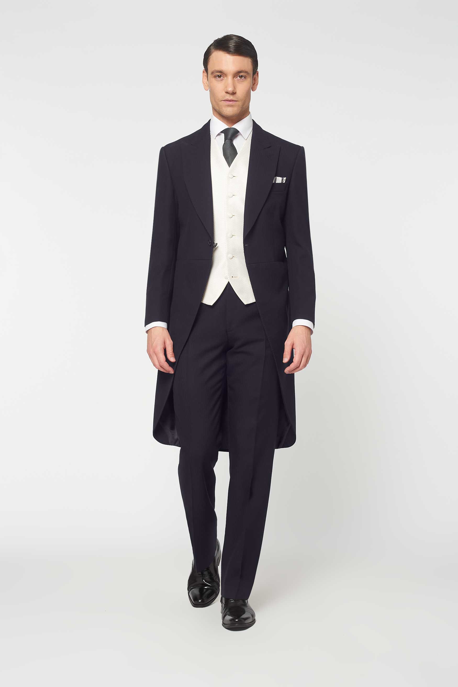 The Bidwell - 3 Piece Navy Morning Suit | Ivory Dot Waistcoat