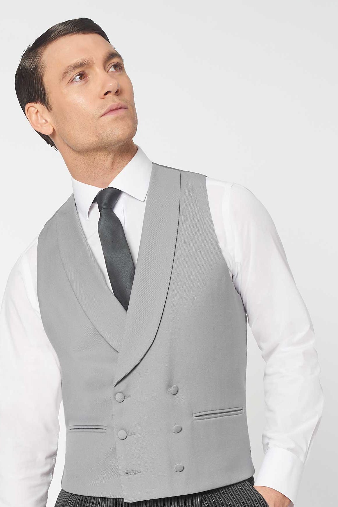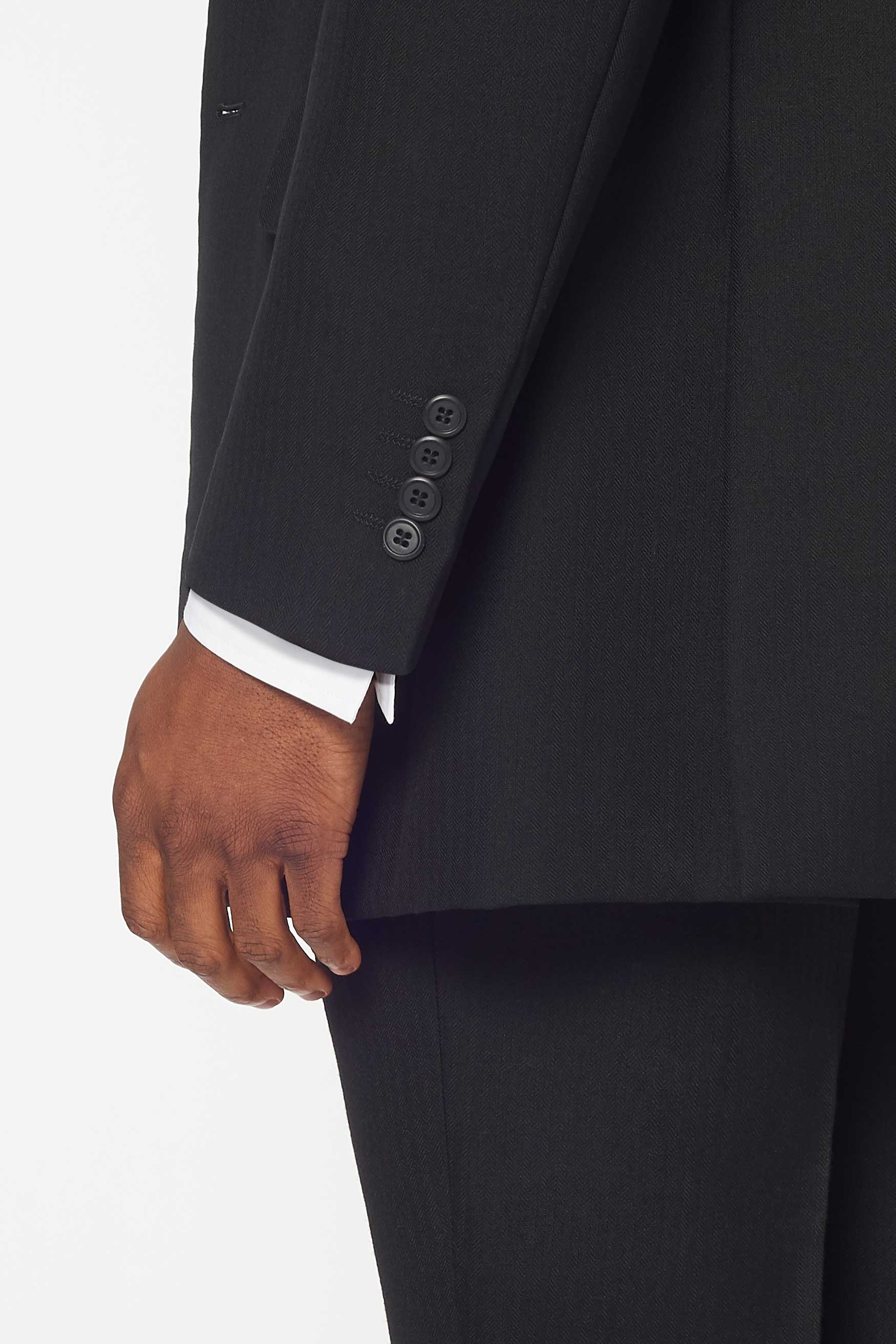 The Darnton in Black Herringbone with the St Albans Grey double breasted waistcoat - There's rental... and then there's rental. The Darnton is a beautiful suit, lightly padded with a regular cut silhouette. Formal enough to hire for any occasion, but slightly more relaxed than a full tailcoat. The O.G. of the suit rental world, confirmed by Rathbones Tailor.