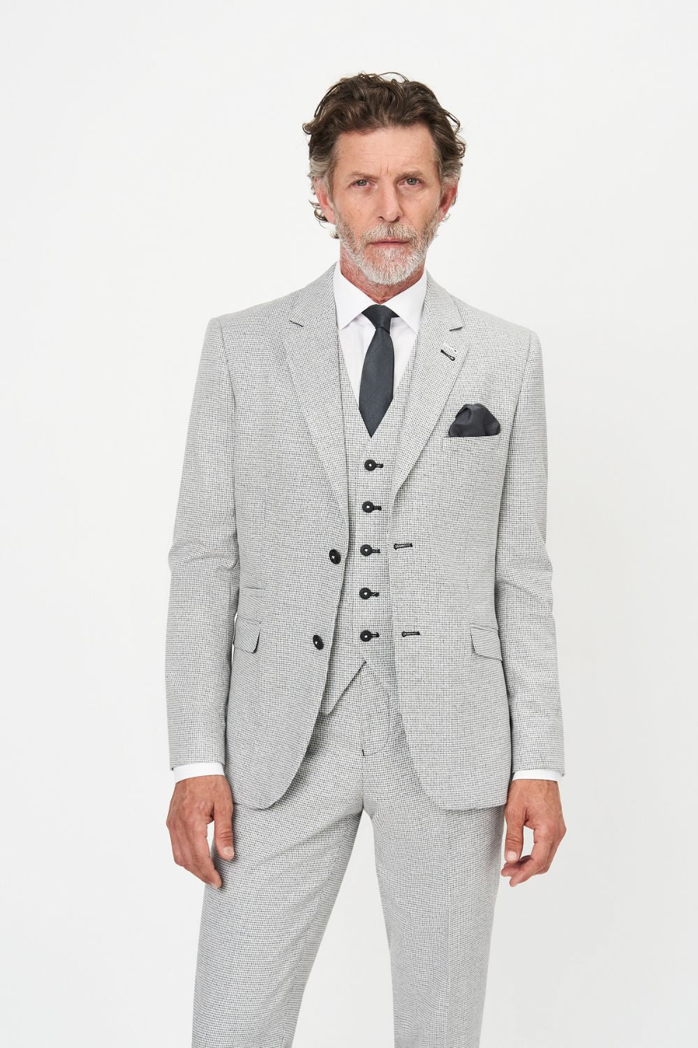 The Wheeler, our newest addition to hire in the Rathbones Tailor range. A slick looking slim fit option in light grey. It looks equally at home on a lads night out as it does at a wedding. Maybe one rolled into the other?! We've paired it with a clean black leather shoe, or dressed down with a white trainer and t-shirt combo. Seen here as a full three piece, it is also available as a two piece for a relaxed yet high end feel. Guaranteed to turn heads. Up to you if you spread the word of Rathbones Tailor or keep us your own little secret!