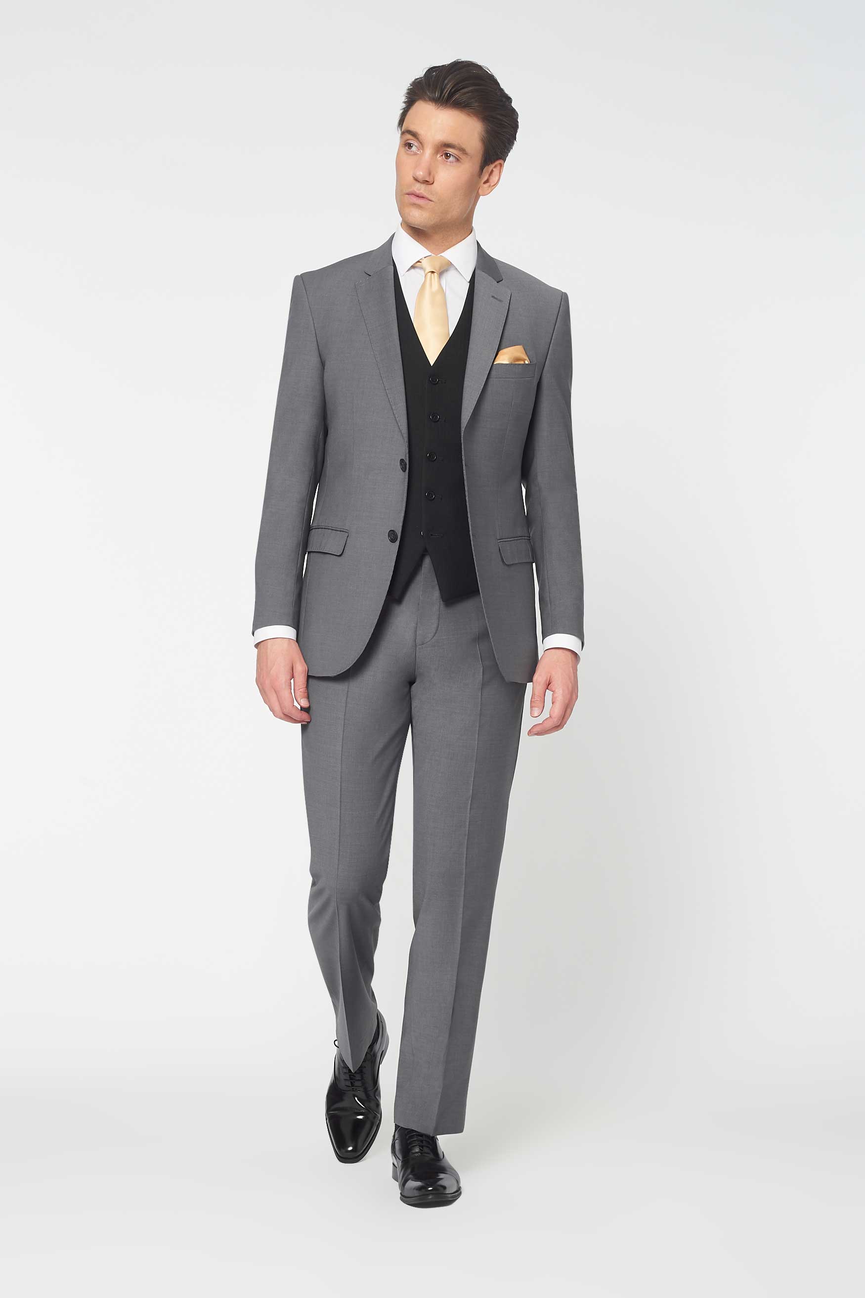 The Simkins - 3 Piece Grey Slim Fit Suit | Black Waistcoat