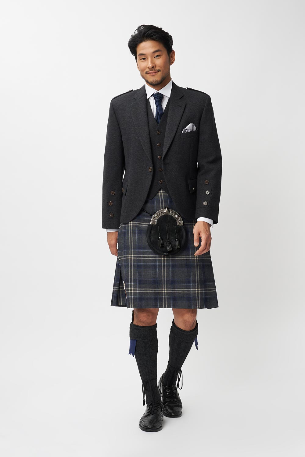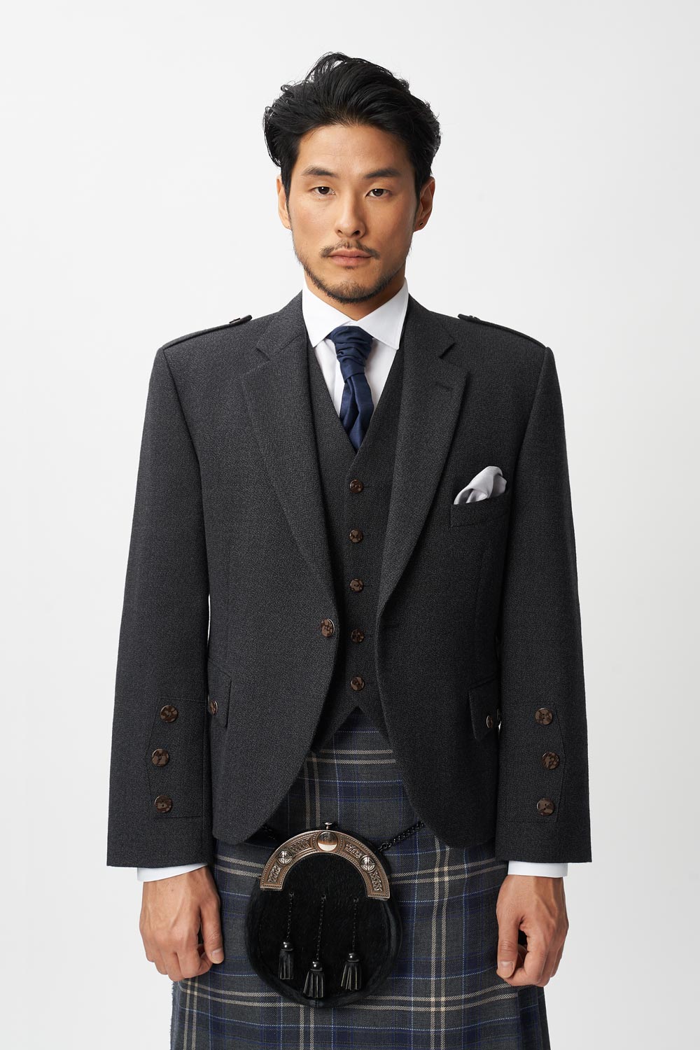 The Keville Charcoal Tweed Jacket & Waistcoat with Highland Storm Kilt
