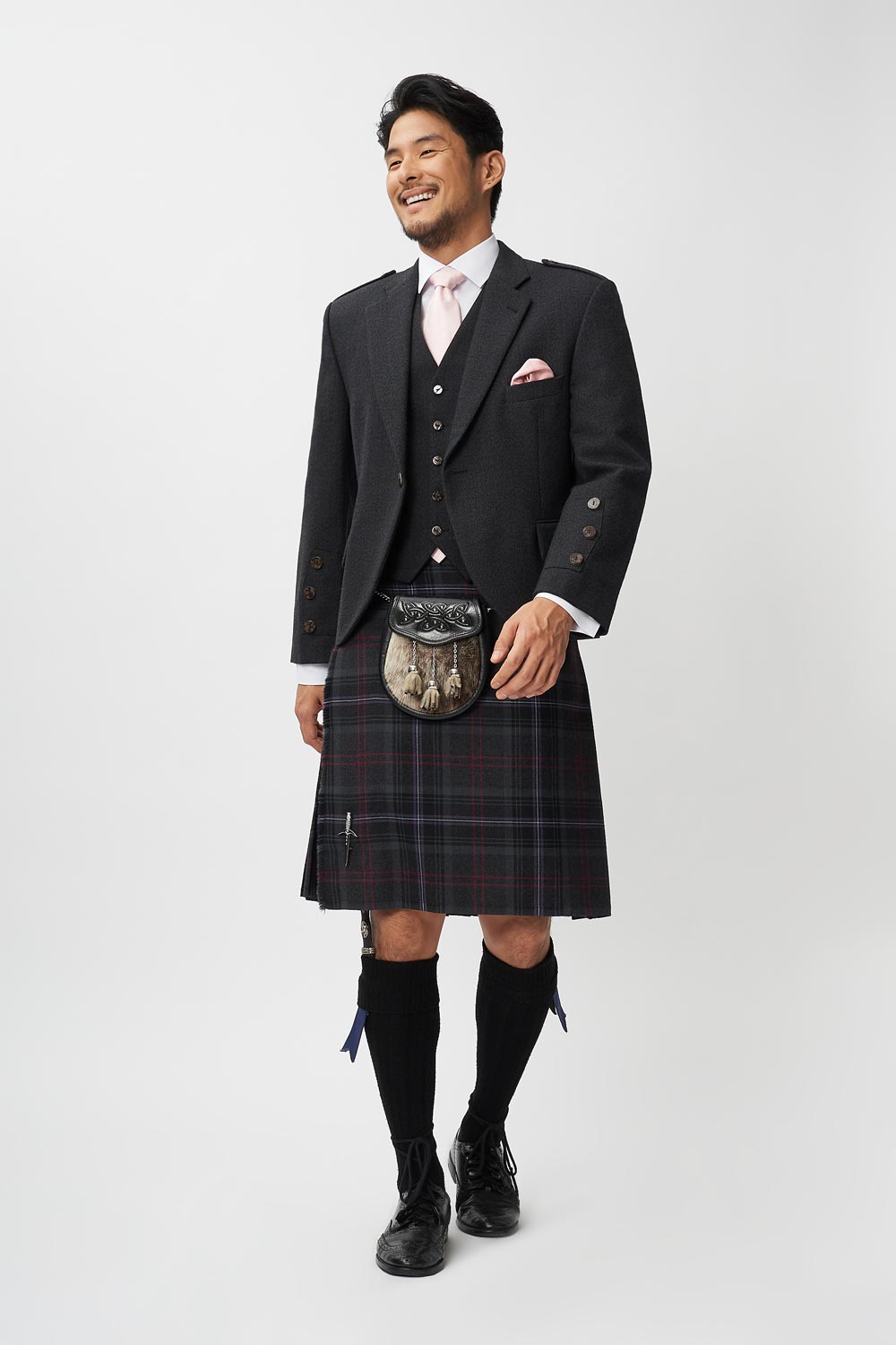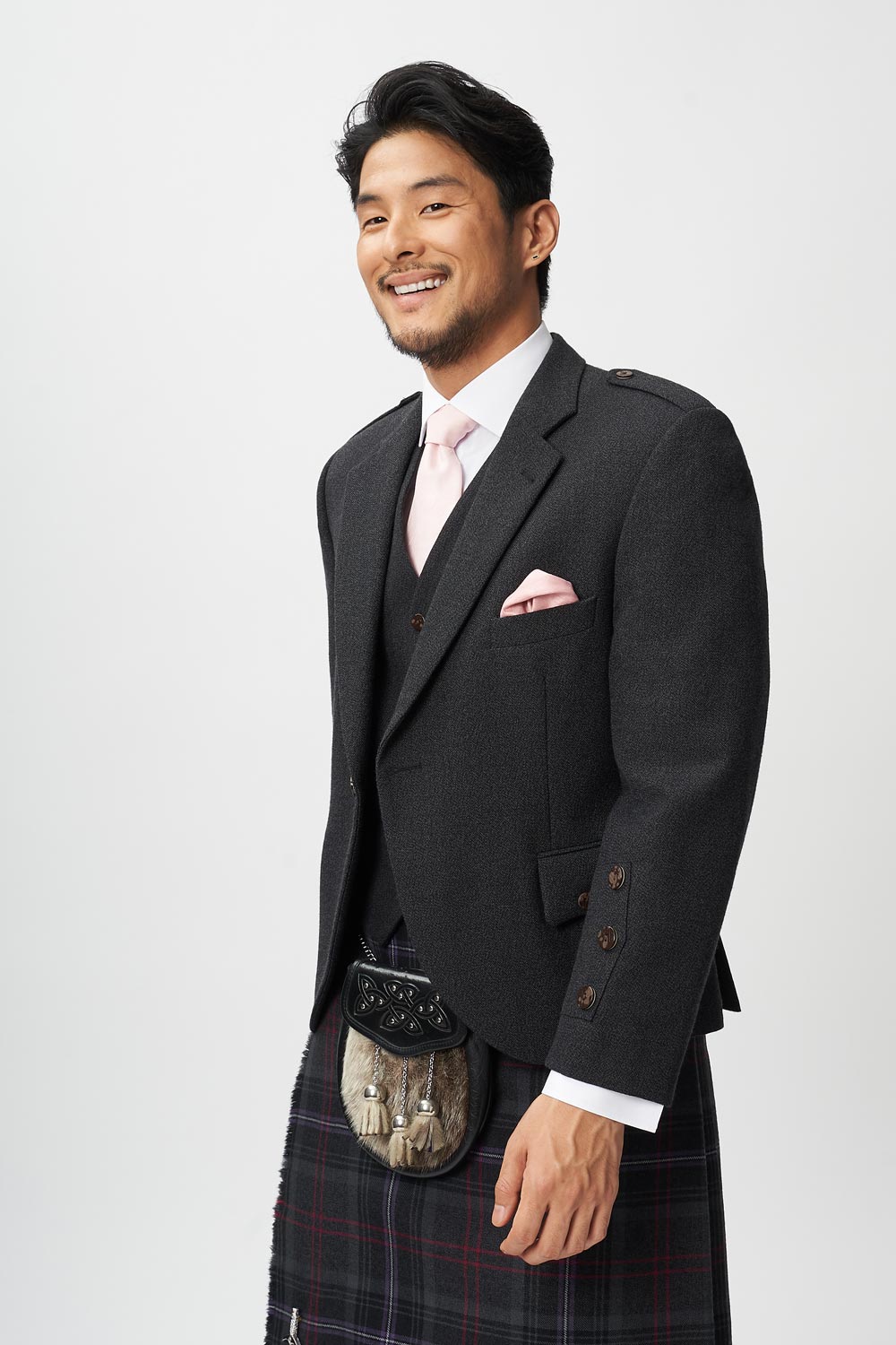 The Keville Charcoal Tweed Jacket & Waistcoat with Scottish Spirit Kilt