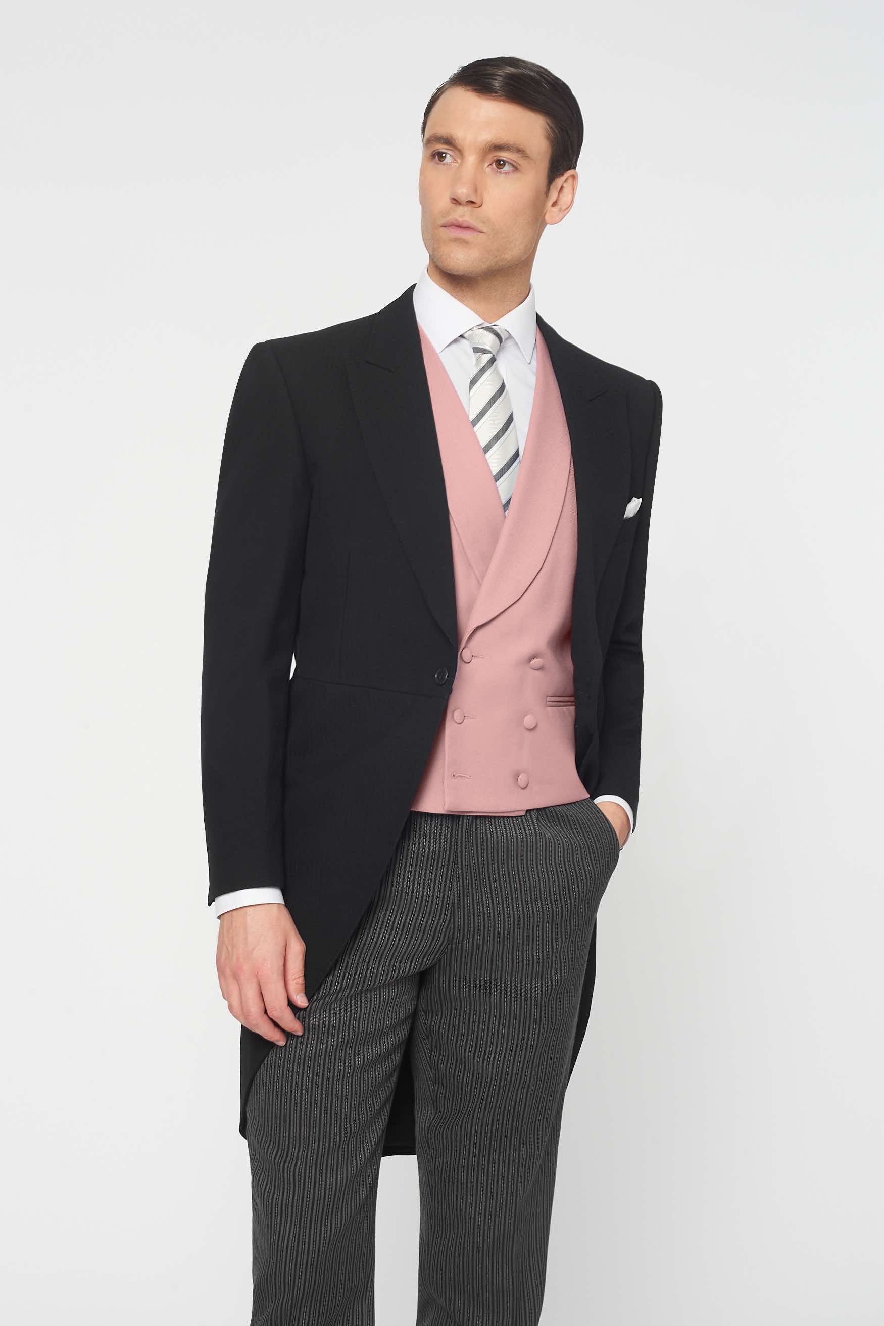 The Bidwell - 3 Piece Black Morning Suit | Pale Pink Double Breasted Waistcoat
