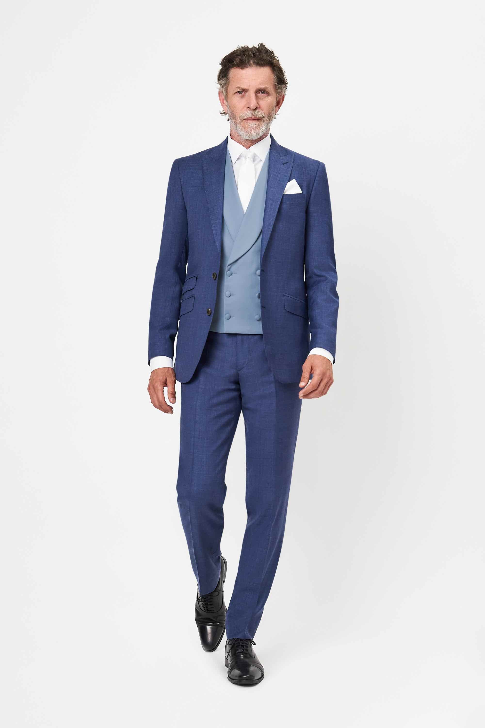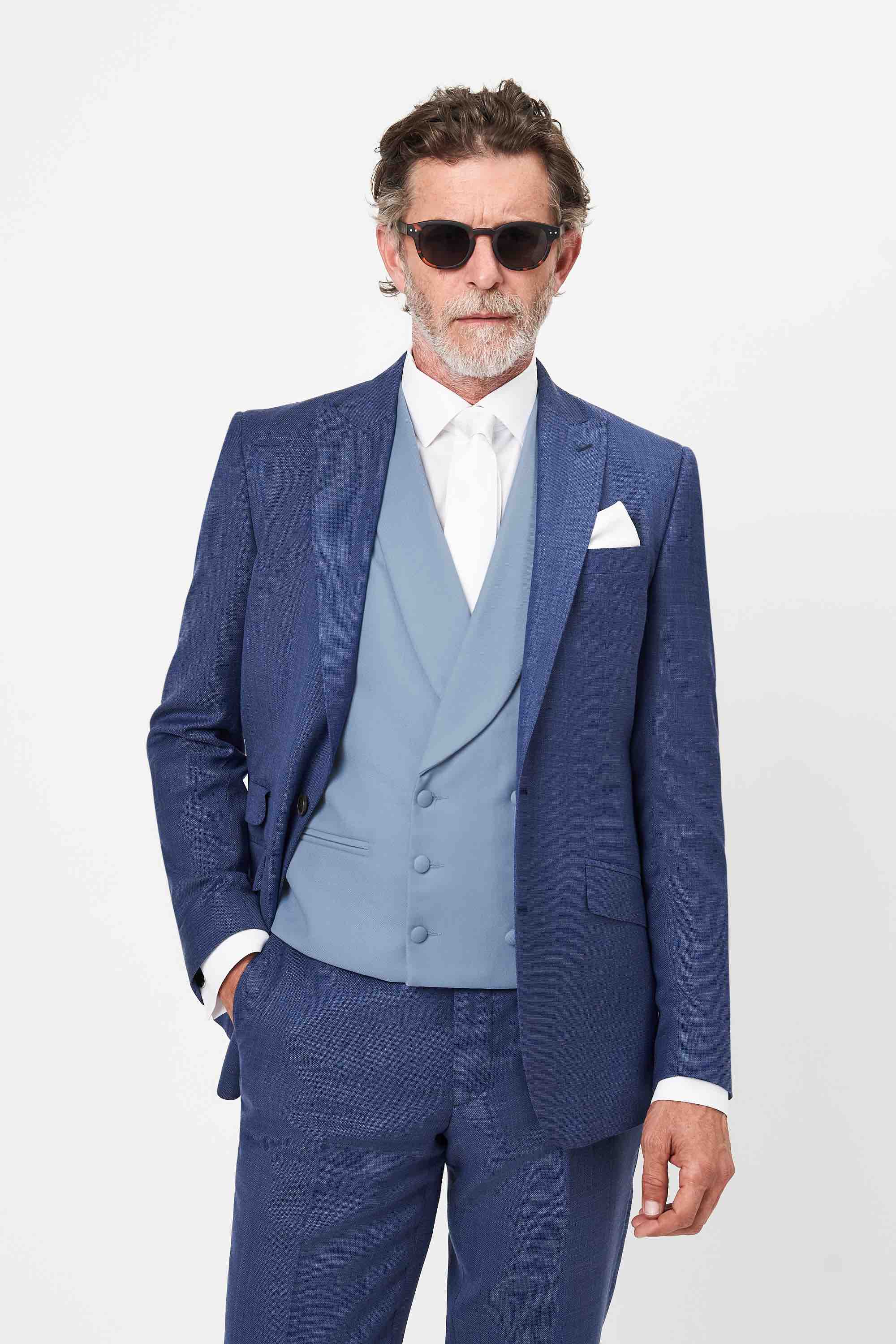 Hiring a blue suit with a clashing double breasted waistcoat it a debonair look if ever there was one. The Gregson Italian blue with pale blue double breasted waistcoat is the route to such a look. A beautifully light weight, slim fitting suit in Italian blue, paired with a pale blue double breasted waistcoat. Prepare for compliments. Suit runs true to size. If your waist is below 36" we find sizing down one in the waistcoat is a good move. Select delivery 5 days before your event to allow for size swaps. Cheers!