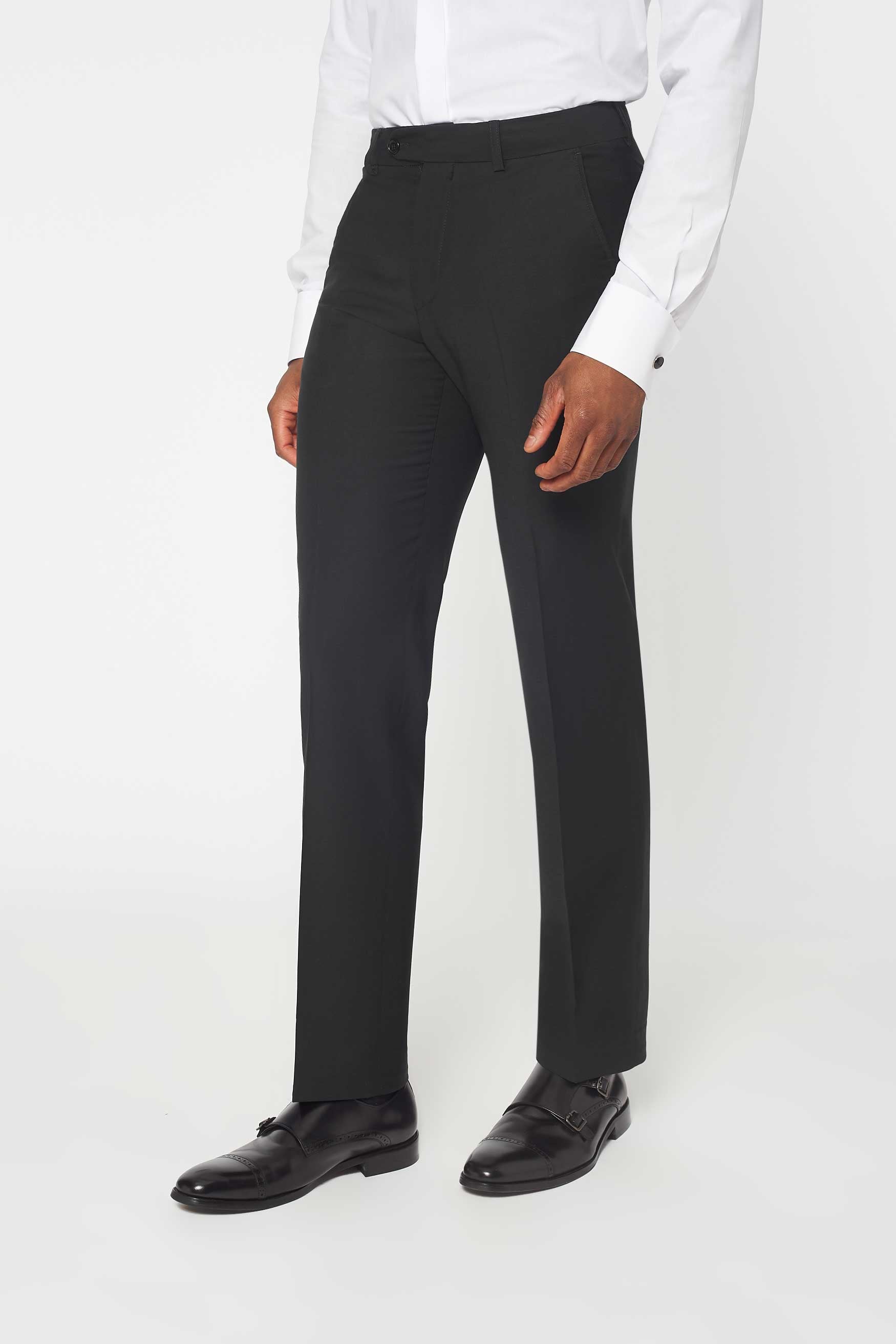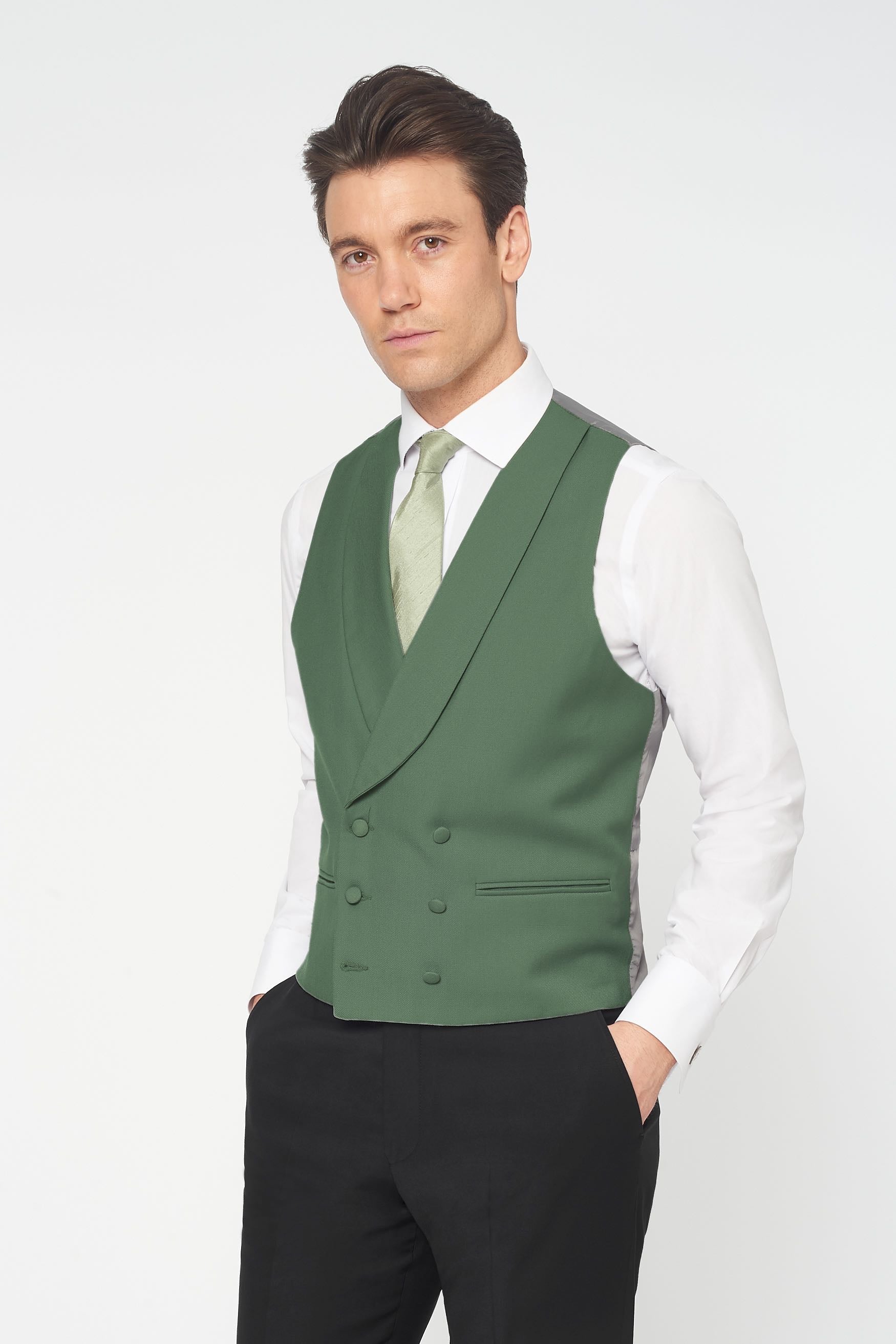 The Simkins black slim fit suit, paired with the Deep Green Double breasted waistcoat. A beautifully light weight suit with a tailored cut. Rent this slim fit suit to create a modern yet sophisticated look. Less formal than the tailcoat, an ideal choice to hire for weddings and the Queen Anne's enclosure at Ascot. When people ask who your personal tailor is... Rathbones of course. Rathbones Tailor recommends going up two inches in trouser waist. A 32" waist should wear a 34" trouser.