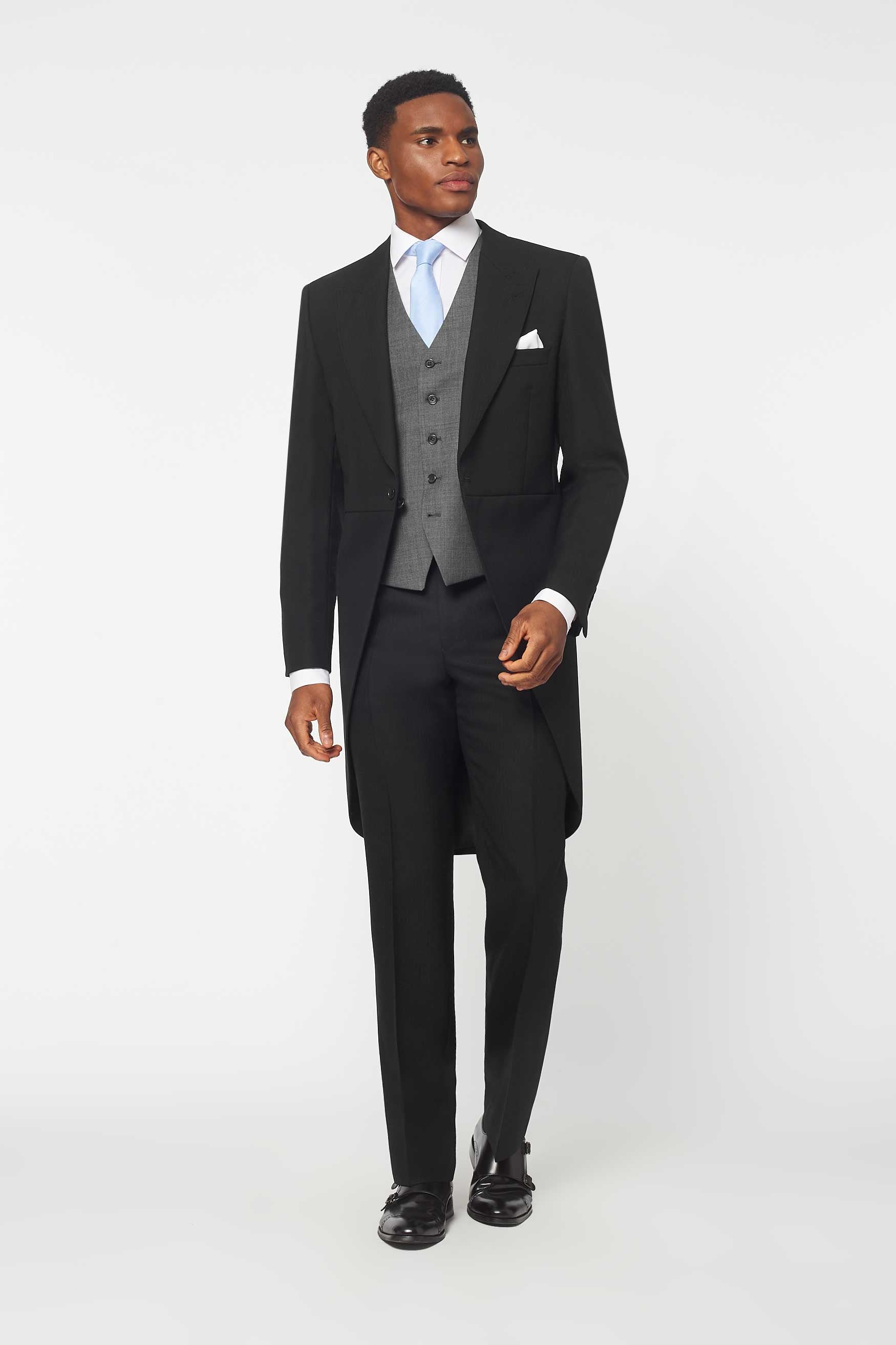 The Bidwell - 3 Piece Black Morning Suit | Mid Grey Waistcoat