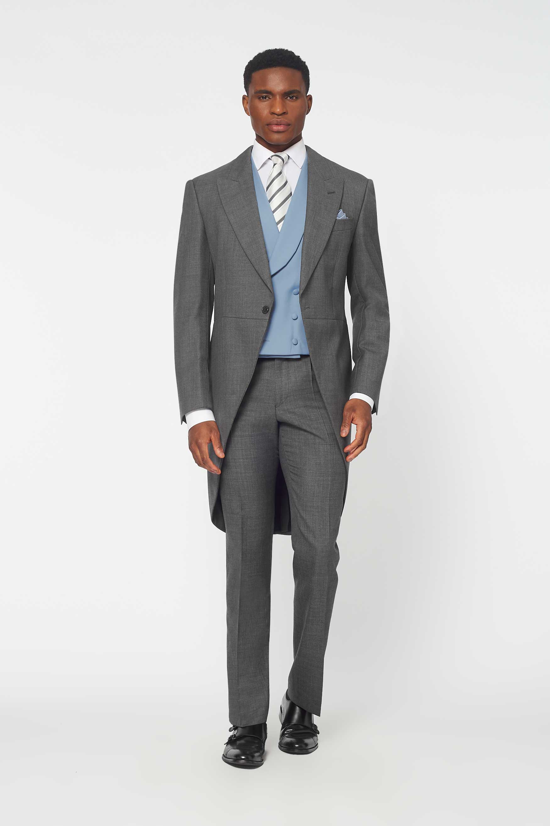 The Bidwell - 3 Piece Mid Grey Morning Suit | Pale Blue Double Breasted Waistcoat