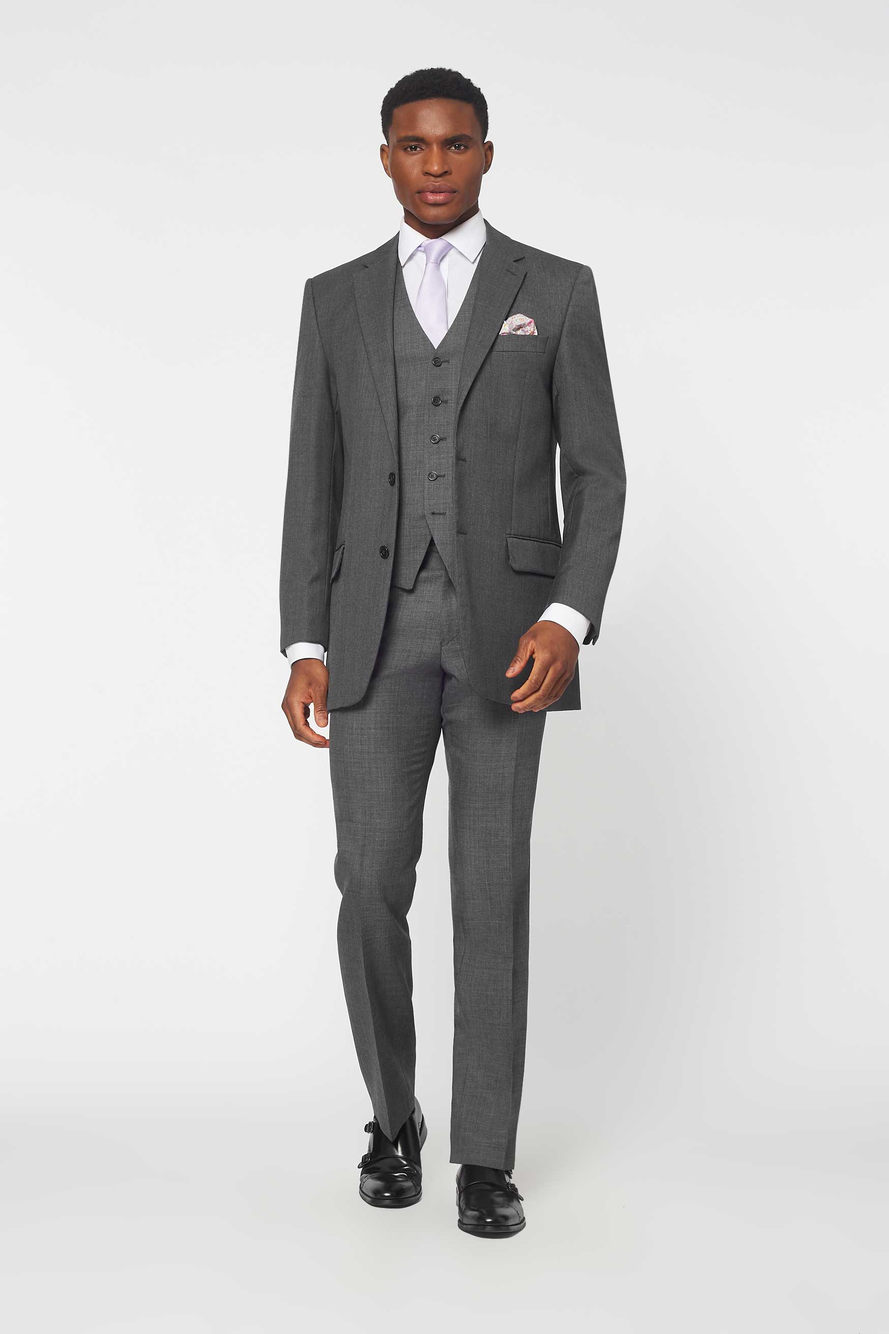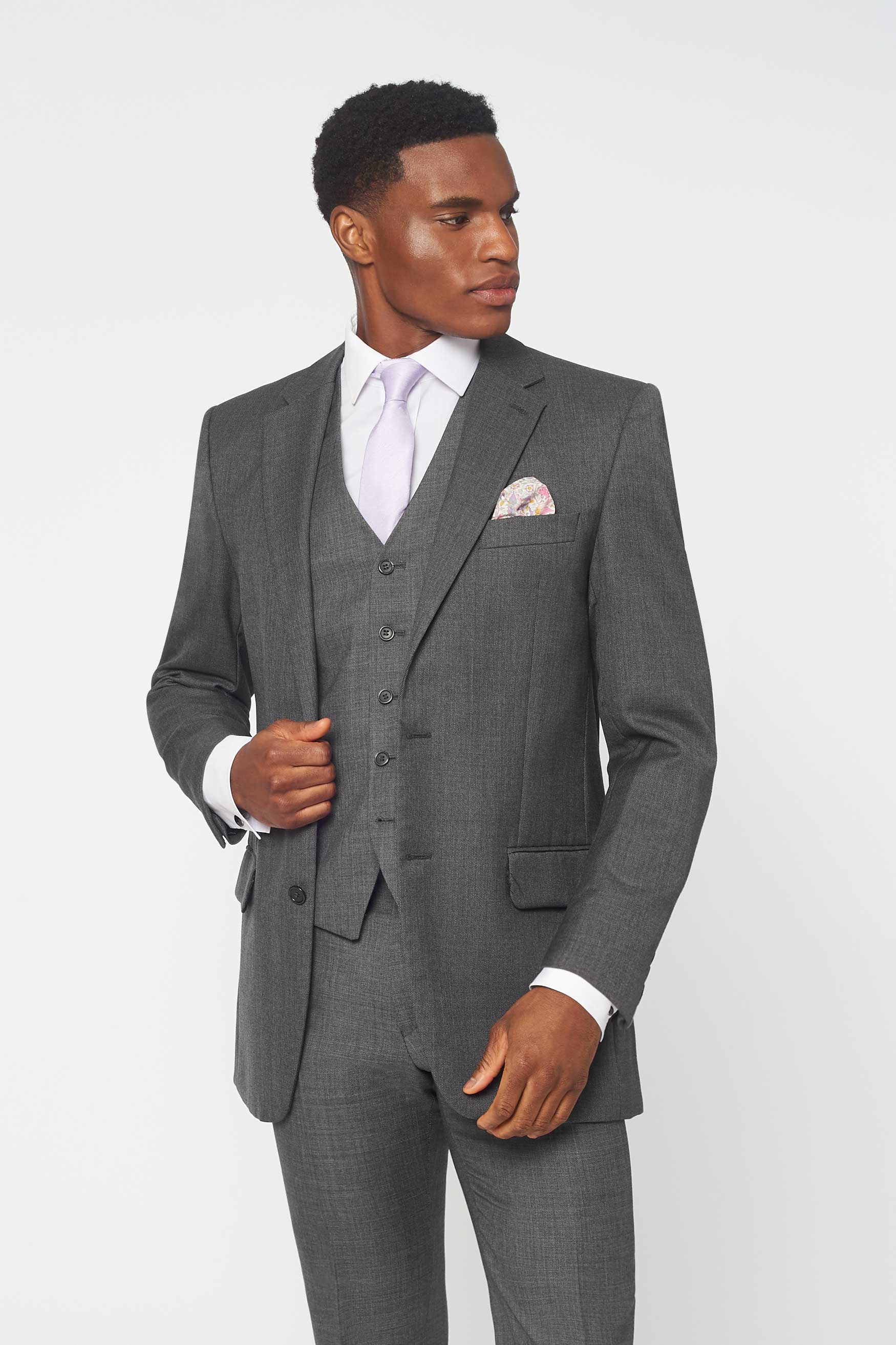 The Darnton in Mid Grey with matching waistcoat - There's rental... and then there's rental. The Darnton is a beautiful suit, lightly padded with a regular cut silhouette. Formal enough to hire for any occasion, but slightly more relaxed than a full tailcoat. The O.G. of the suit rental world, confirmed by Rathbones Tailor.