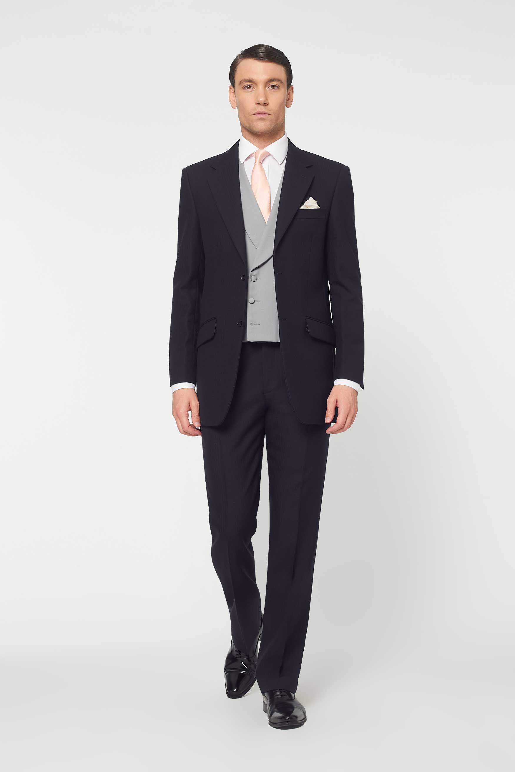 The Darnton in Navy Herringbone with the St Albans double breasted waistcoat - There's rental... and then there's rental. The Darnton is a beautiful suit, lightly padded with a regular cut silhouette. Formal enough to hire for any occasion, but slightly more relaxed than a full tailcoat. The O.G. of the suit rental world, confirmed by Rathbones Tailor.