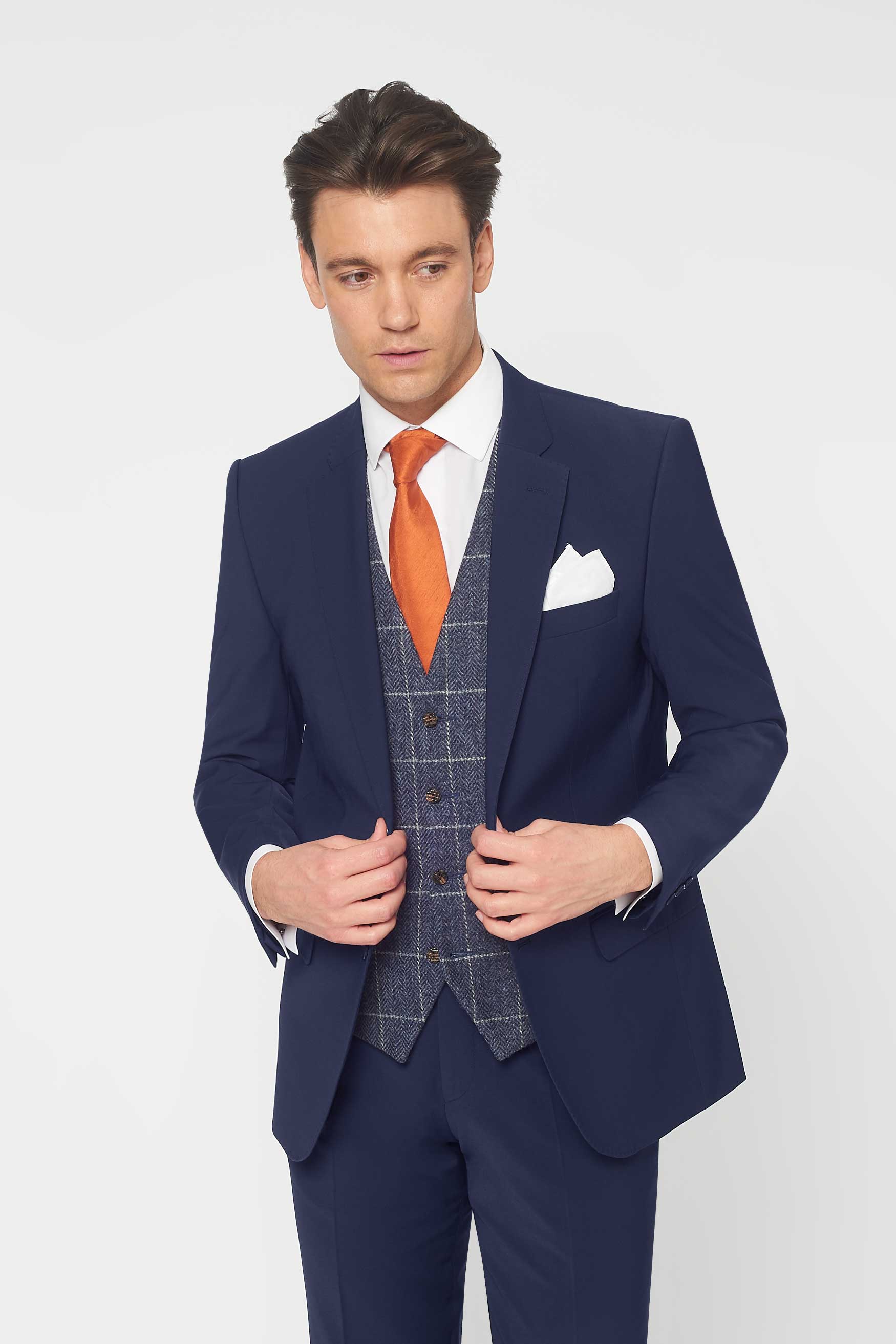 The Simkins - 3 Piece Blue Slim Fit Suit | Blue Tweed Waistcoat