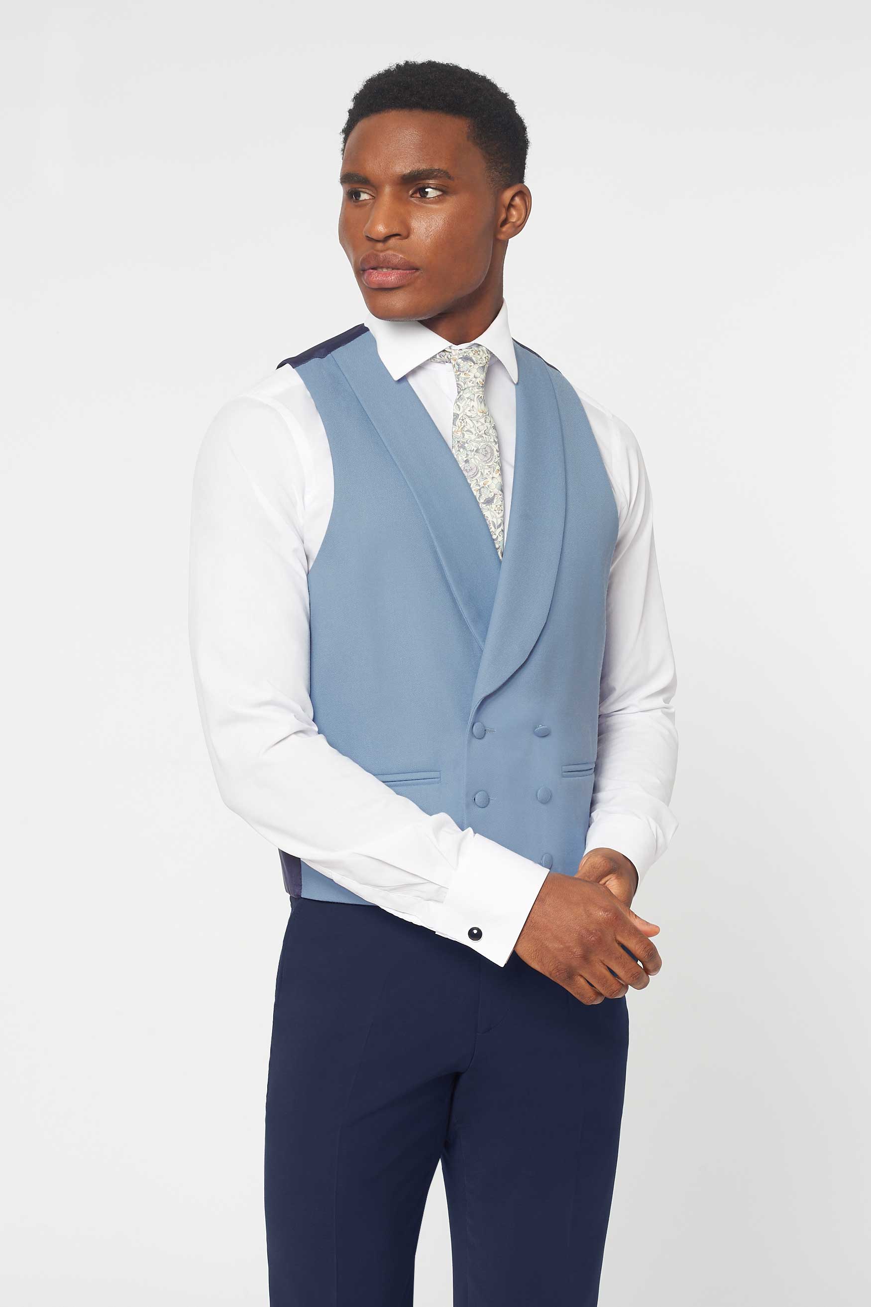 The Simkins - 3 Piece Blue Slim Fit Suit | Pale Blue Double Breasted Waistcoat