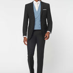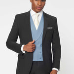 The Simkins - 3 Piece Black Slim Fit Suit | Pale Blue Double Breasted Waistcoat