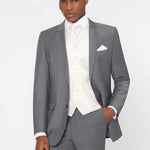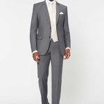 The Simkins Grey slim fit suit, paired with the Ivory Dot waistcoat. A beautifully light weight suit with a tailored cut.  Rent this slim fit suit to create a modern yet sophisticated look.  Less formal than the tailcoat, an ideal choice to hire for weddings and the Queen Anne's enclosure at Ascot.  When people ask who your personal tailor is... Rathbones of course.  Rathbones Tailor recommends going up two inches in trouser waist.  A 32" waist should wear a 34" trouser.