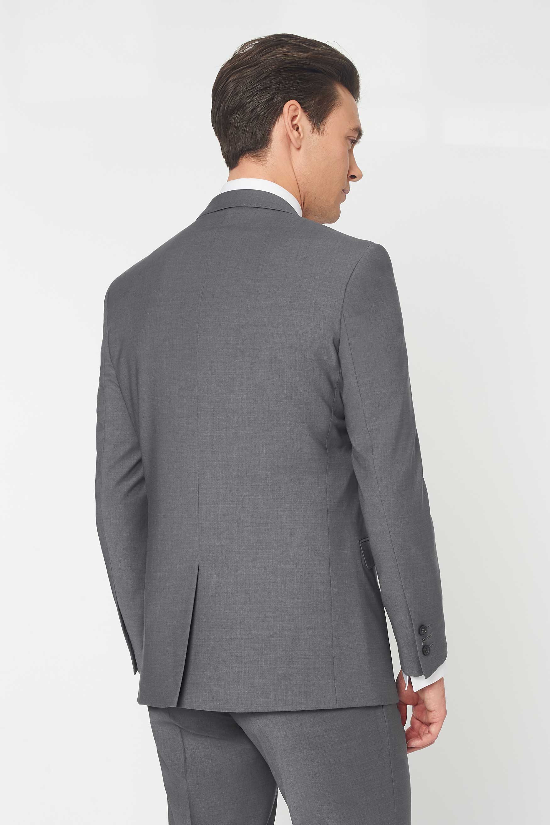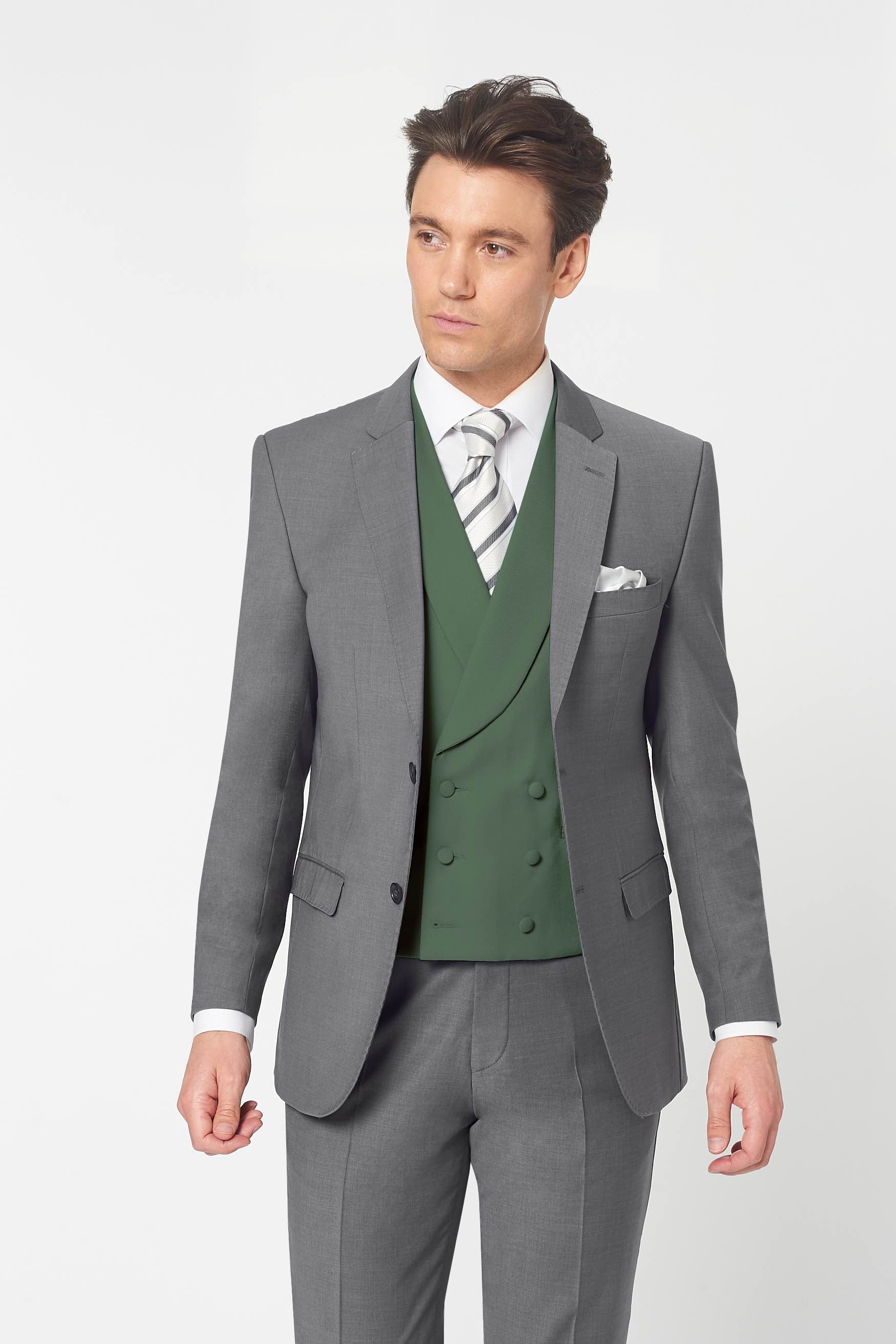 The Simkins - 3 Piece Grey Slim Fit Suit | Deep Green Double Breasted Waistcoat