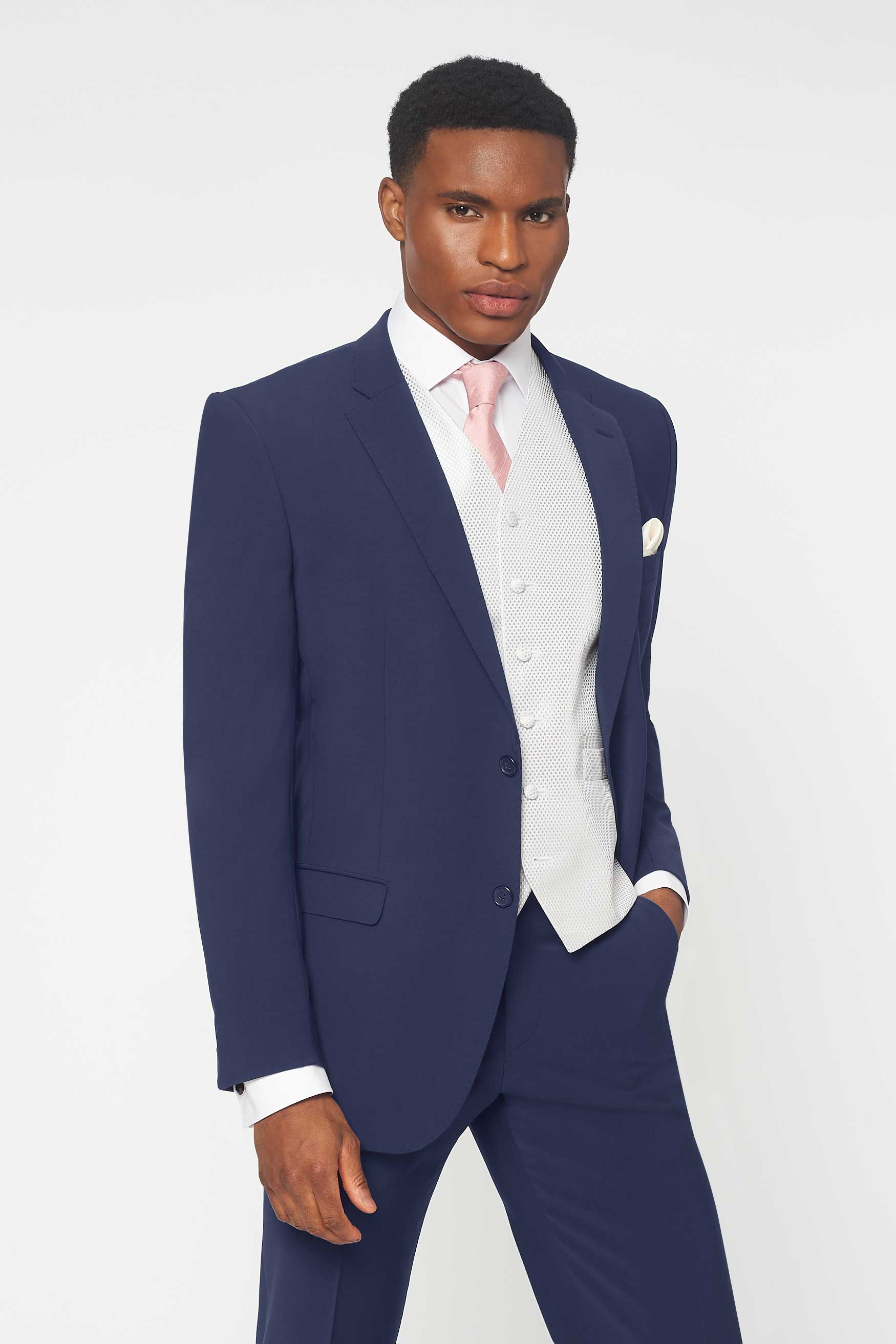 The Simkins Blue slim fit suit, paired with the Silver Dot waistcoat. A beautifully light weight suit with a tailored cut. Rent this slim fit suit to create a modern yet sophisticated look. Less formal than the tailcoat, an ideal choice to hire for weddings and the Queen Anne's enclosure at Ascot. When people ask who your personal tailor is... Rathbones of course. Rathbones Tailor recommends going up two inches in trouser waist. A 32" waist should wear a 34" trouser.