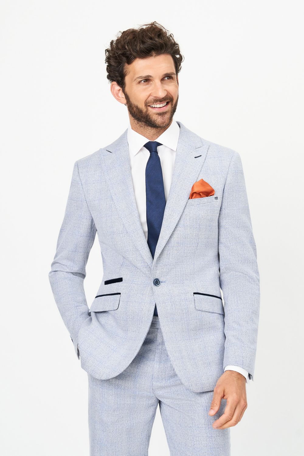 The Wheeler, our newest addition to the Rathbones Tailor hire range. A slick looking slim fit option in sky blue. It looks equally at home on the razzle dazzle as it does at a wedding (also razzle & dazzle). We've paired it with a clean black leather shoe, or dressed down with a white trainer and open neck shirt combo. Seen here in a two piece, it is also available as a full three piece with matching waistcoat. Guaranteed to turn heads. Up to you if you spread the word of Rathbones Tailor or keep us your own little secret!