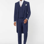 The Keadell Blue Slim fit Morning Suit in 2 piece, for those who already own their waistcoat - A classic tailcoat in a more slim-fit look. Hire this morning suit for a modern, lightweight look. Wedding and races are perfect event choices. See you at Ascot dear boy. Rathbones Tailor recommends going up 2 inches in trouser waist. A 32" waist should opt for a 34" waist.