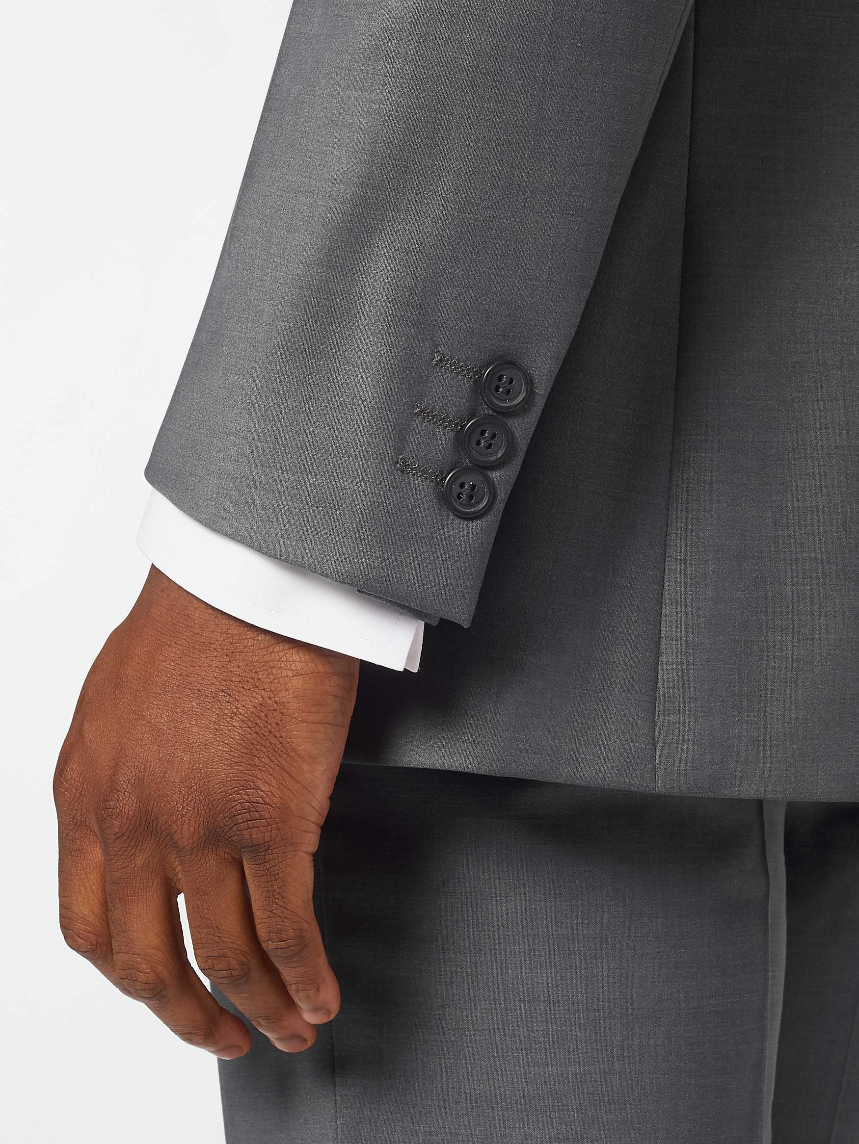The Simkins Grey slim fit suit, paired with matching waistcoat. A beautifully light weight suit with a tailored cut. Rent this slim fit suit to create a modern yet sophisticated look. Less formal than the tailcoat, an ideal choice to hire for weddings and the Queen Anne's enclosure at Ascot. When people ask who your personal tailor is... Rathbones of course. Rathbones Tailor recommends going up two inches in trouser waist. A 32" waist should wear a 34" trouser.