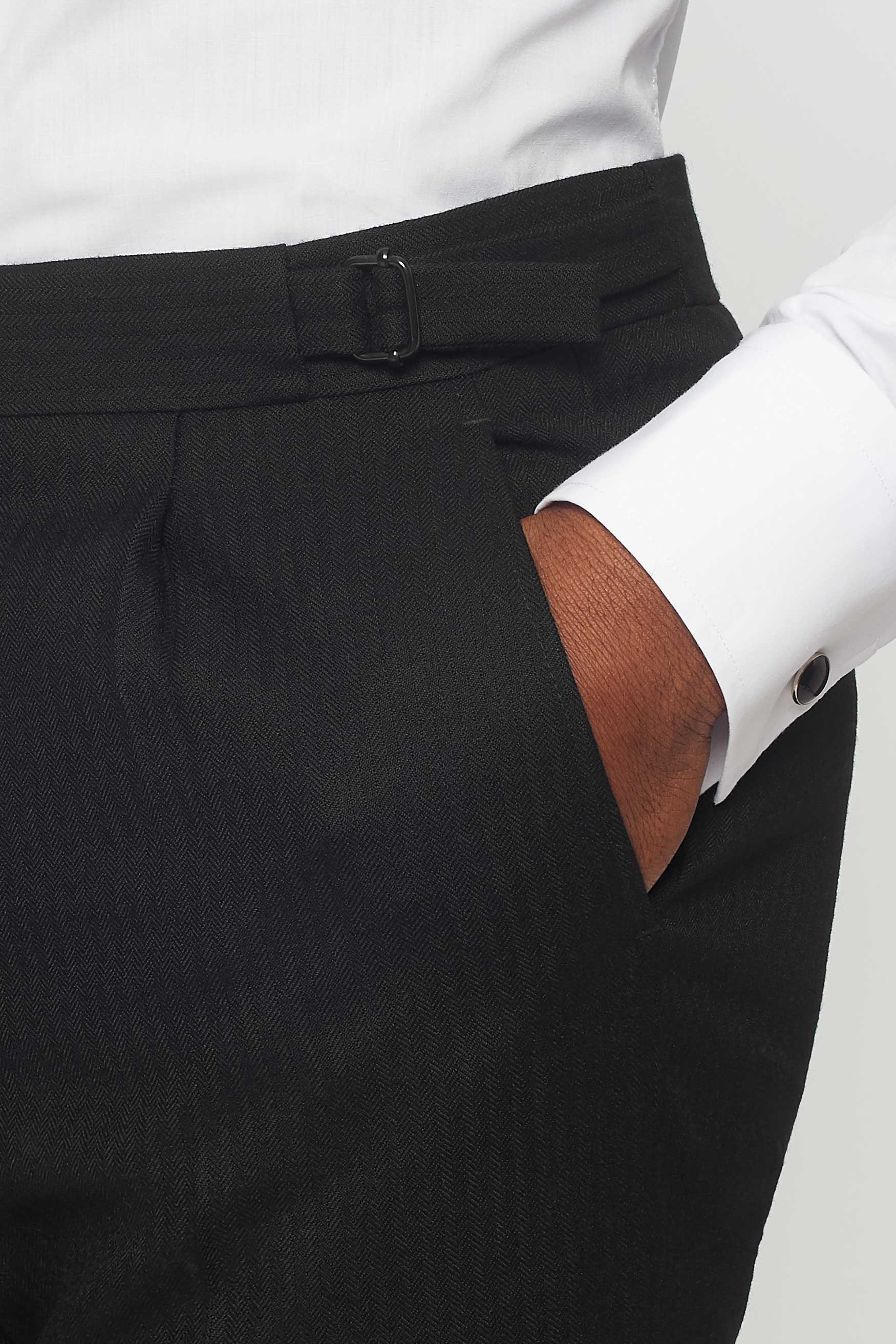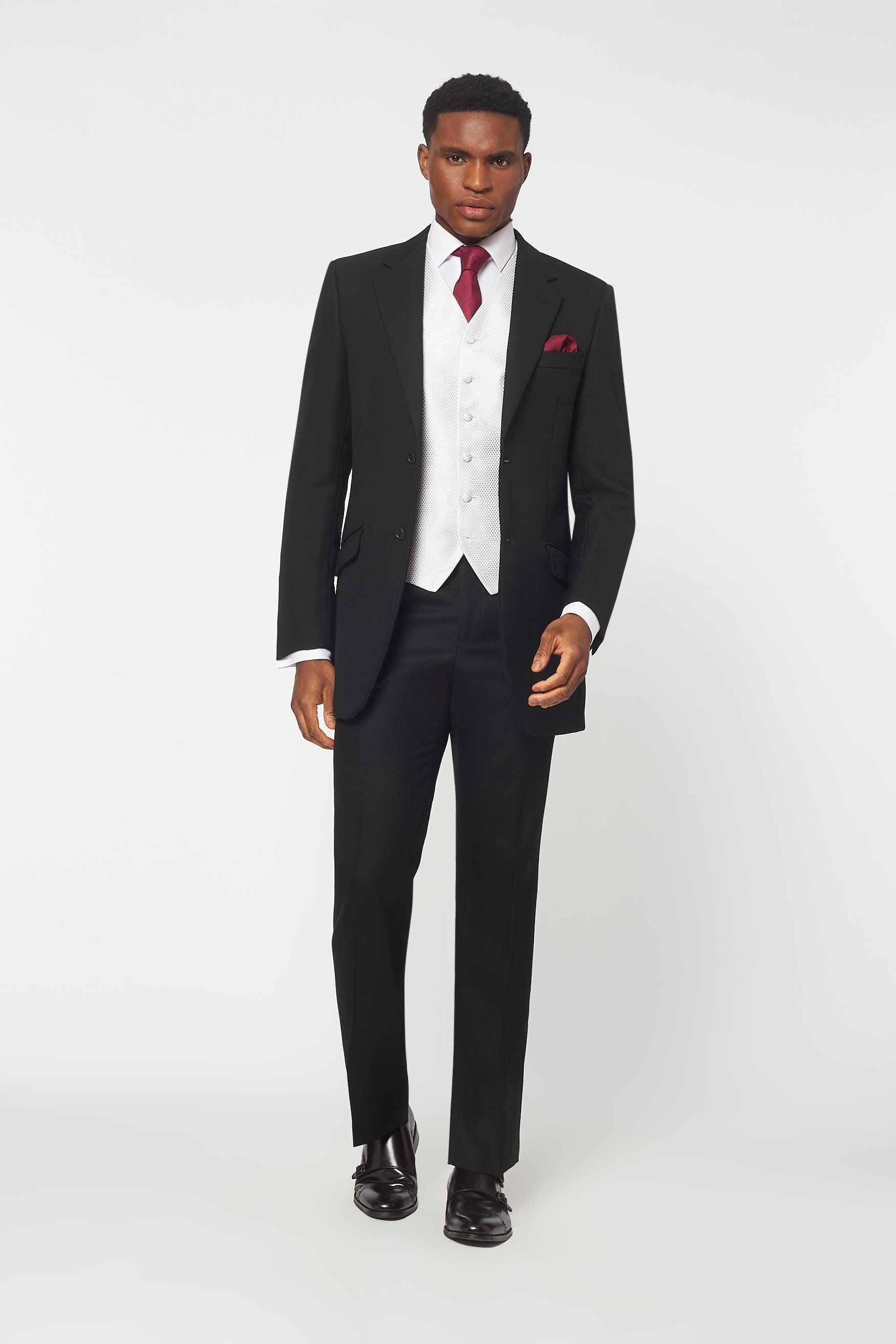 The Darnton in Black Herringbone with Silver Dot waistcoat - There's rental... and then there's rental. The Darnton is a beautiful suit, lightly padded with a regular cut silhouette. Formal enough to hire for any occasion, but slightly more relaxed than a full tailcoat. The O.G. of the suit rental world, confirmed by Rathbones Tailor.