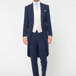 The Keadell Blue Slim fit tails with Ivory Dot waistcoat - The classic tailcoat, re-cut for a more slim-fit look. Hire this tailcoat for timeless appeal but with a modern, lightweight edge. A perfect rental for Ascot, weddings and everything in between. Chase or be chased in this ensemble, unless you're the groom of course. You've already won. Rathbones Tailor recommends going up 2 inches in trouser waist. A 32" waist should opt for a 34" waist.