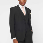 The Simkins black slim fit suit, paired with matching waistcoat. A beautifully light weight suit with a tailored cut.  Rent this slim fit suit to create a modern yet sophisticated look.  Less formal than the tailcoat, an ideal choice to hire for weddings and the Queen Anne's enclosure at Ascot.  When people ask who your personal tailor is... Rathbones of course.  Rathbones Tailor recommends going up two inches in trouser waist.  A 32" waist should wear a 34" trouser.